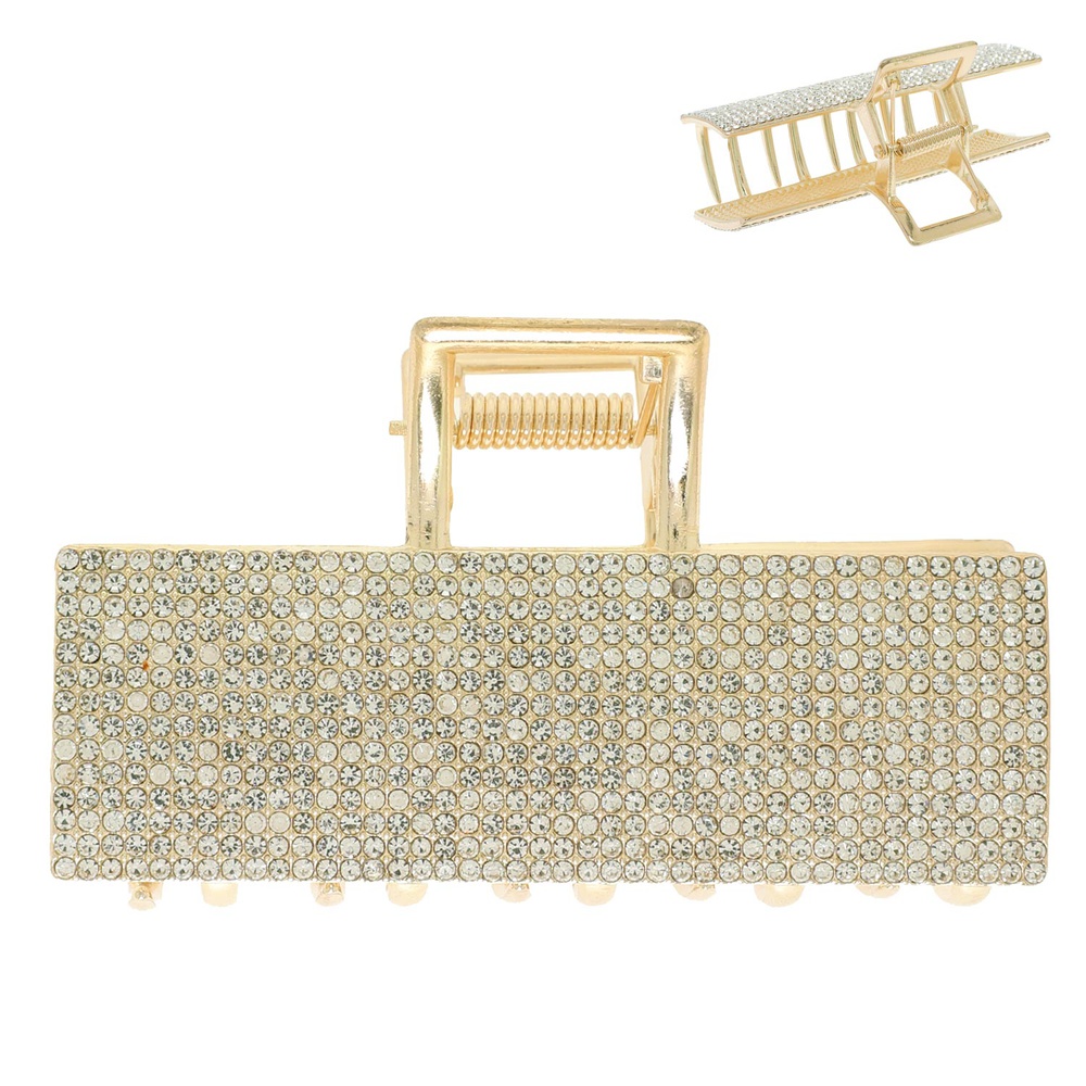 CRYSTAL RHINESTONE RECTANGULAR METAL HAIR CLAW CLIP