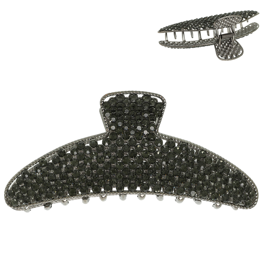 RHINESTONE PAVE CRESCENT SHAPE METAL HAIR CLAW CLIP