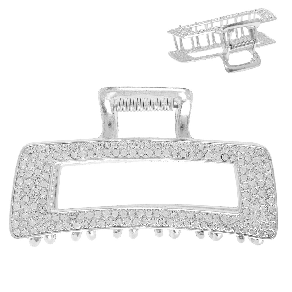 Crystal Pave Open Rectangle Metal Hair Claw Clip