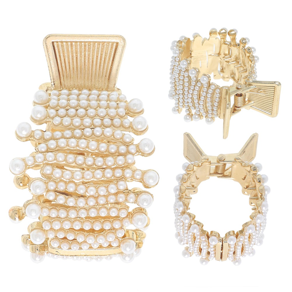CRYSTAL RHINESTONE AND PEARL PONYTAIL METAL HAIR CLAW CLIP