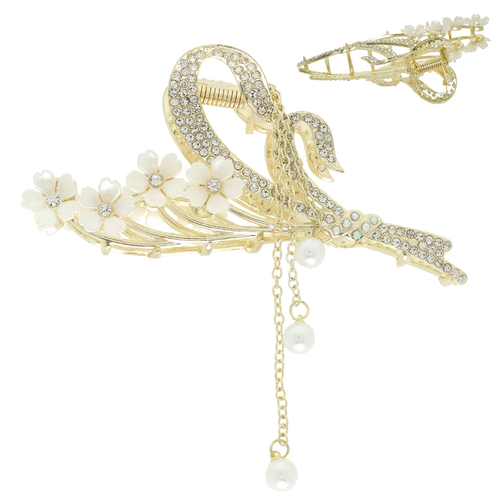 METALLIC FLORAL RHINESTONE PAVE FRINGE PEARL LEAF VINE HAIR CLAW CLIP