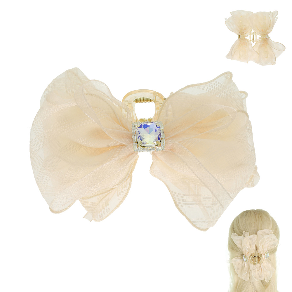 CRYSTAL GEMSTONE ACCENTED MESH BOW CLAW HAIR CLIP