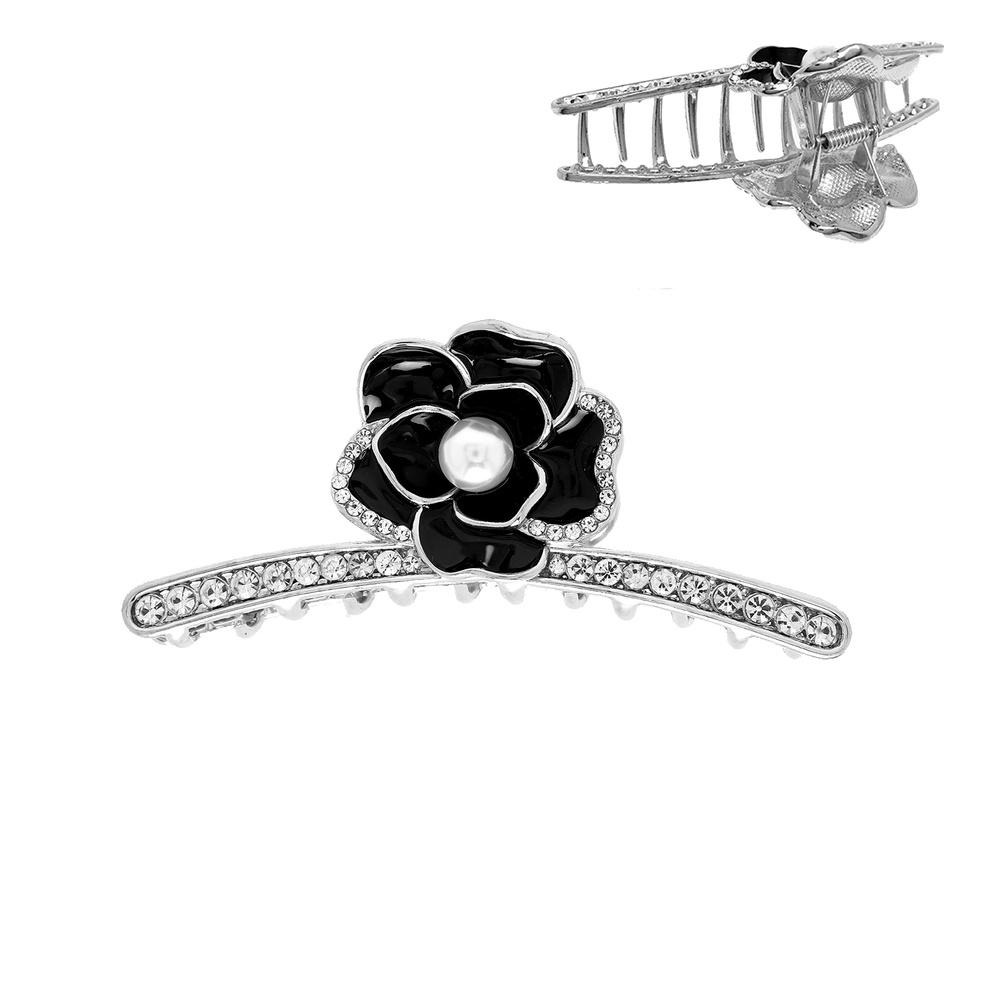 DECORATIVE RHINESTONE PAVE EPOXY PEARL FLOWER HAIR CLAW CLIP