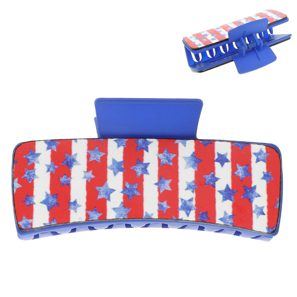 AMERICA THEME STAR SPANGLED PATTERN ACRYLIC HAIR CLAW CLIP