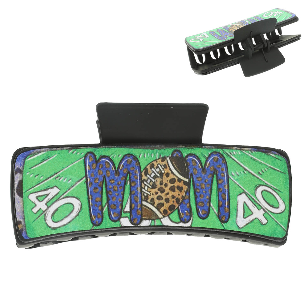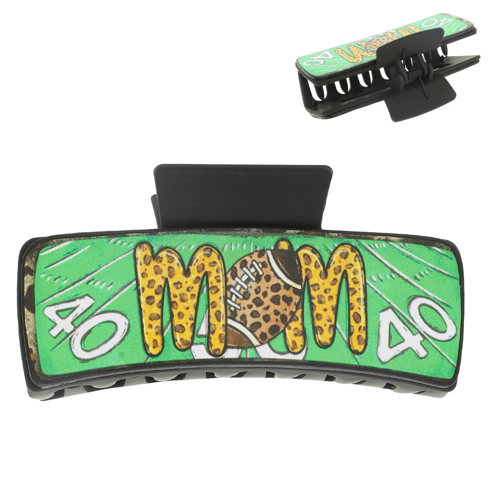 LEOPARD PRINT FOOTBALL "MOM" GRIDIRON GRAPHIC HAIR CLAW CLIP