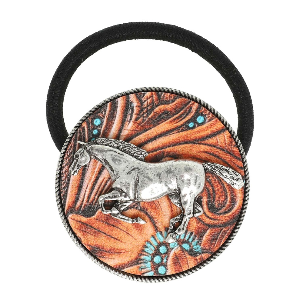 Western Running Horse Printed Wood Metal Hair Tie