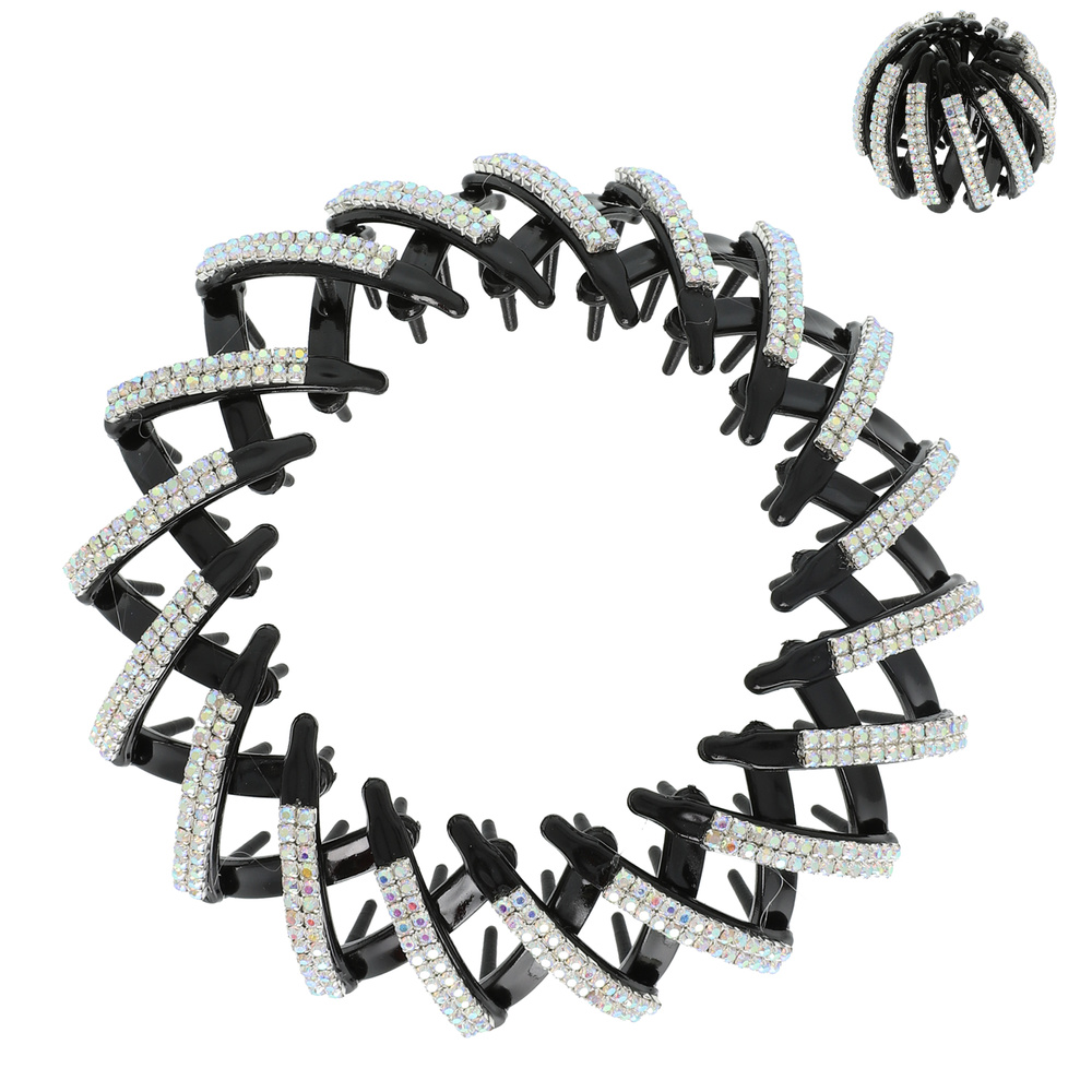 CRYSTAL RHINESTONE AND PEARL RETRACTABLE BIRD NEST PONYTAIL HOLDER DONUT BUN MAKER