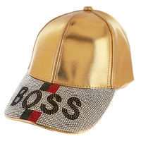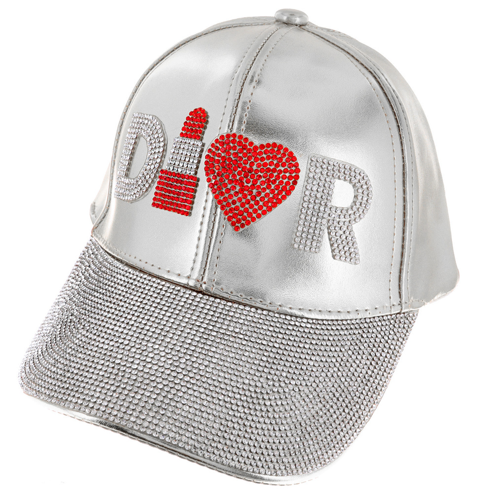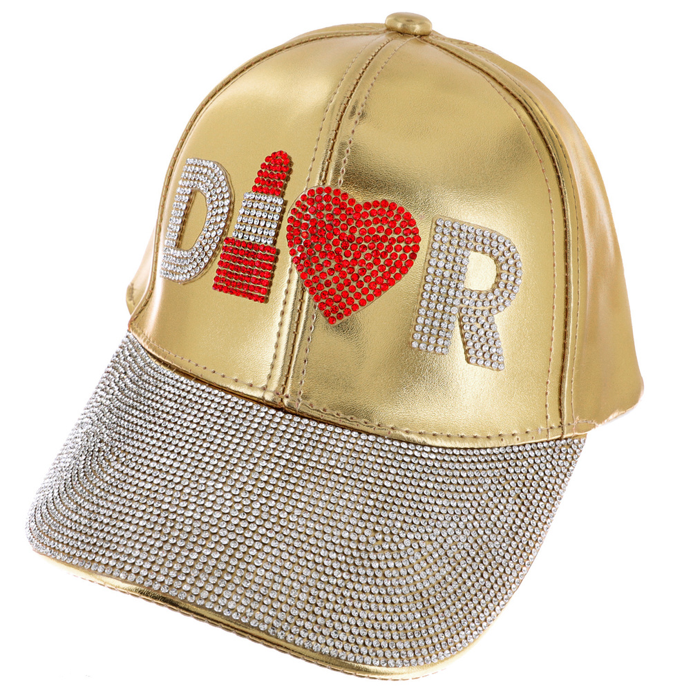 LIPSTICK FASHIONISTA JEWELED CRYSTAL RHINESTONE FAUX METALLIC LEATHER BASEBALL CAP