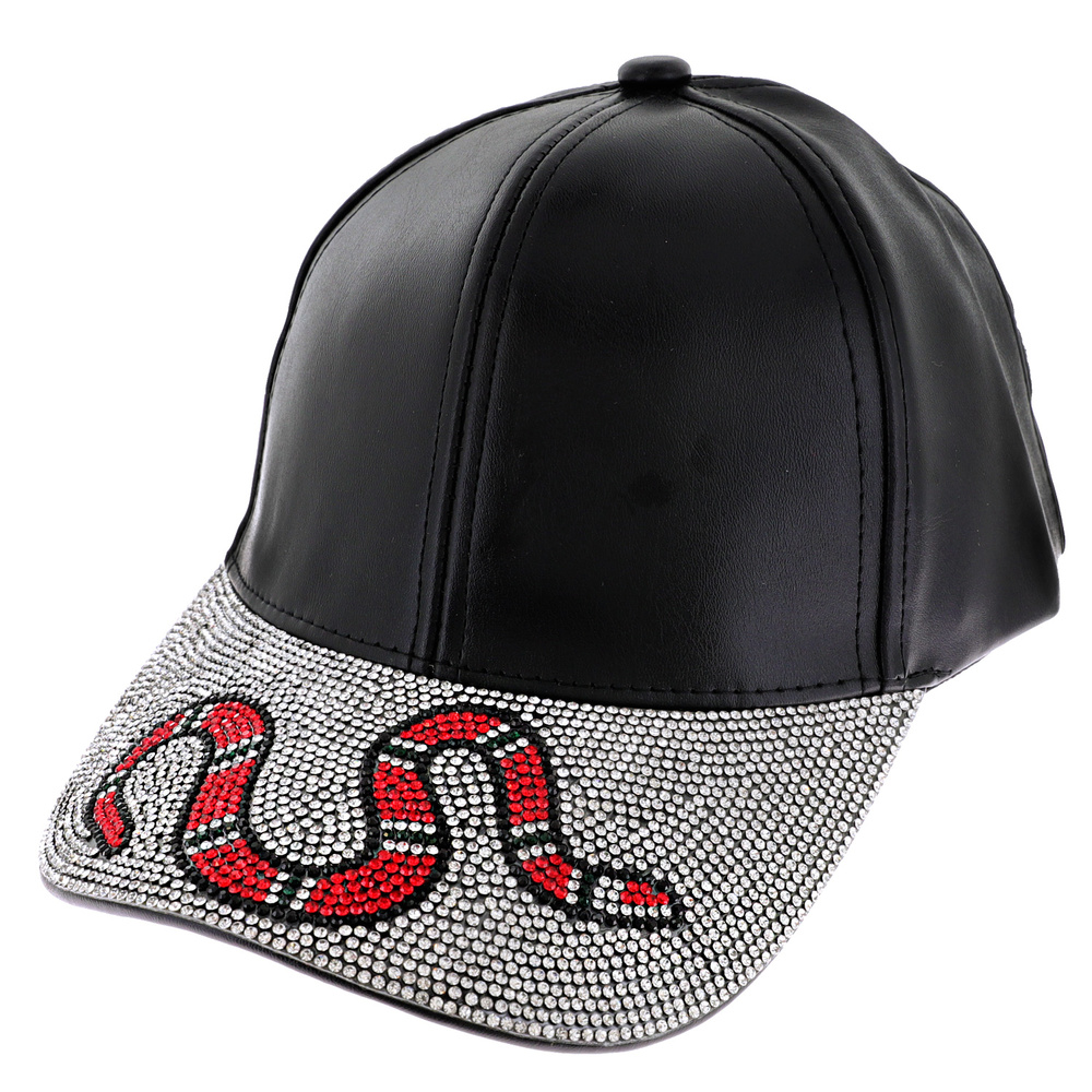 Coral Snake Fashionista Jeweled Crystal Rhinestone Faux Leather Baseball Cap
