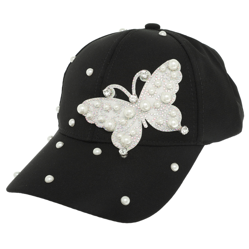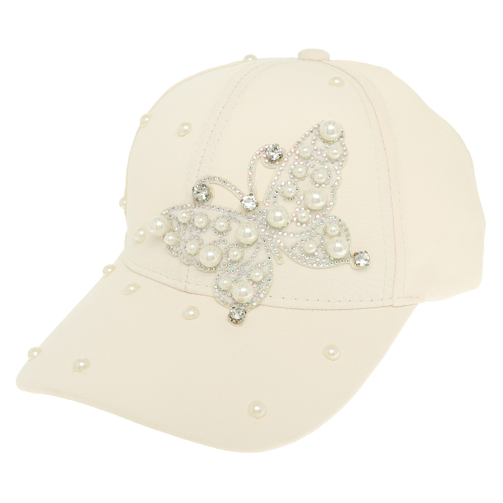 RHINESTONE EMBELLISHED BUTTERFLY DESIGN RELAXED FIT DENIM BASEBALL CAP