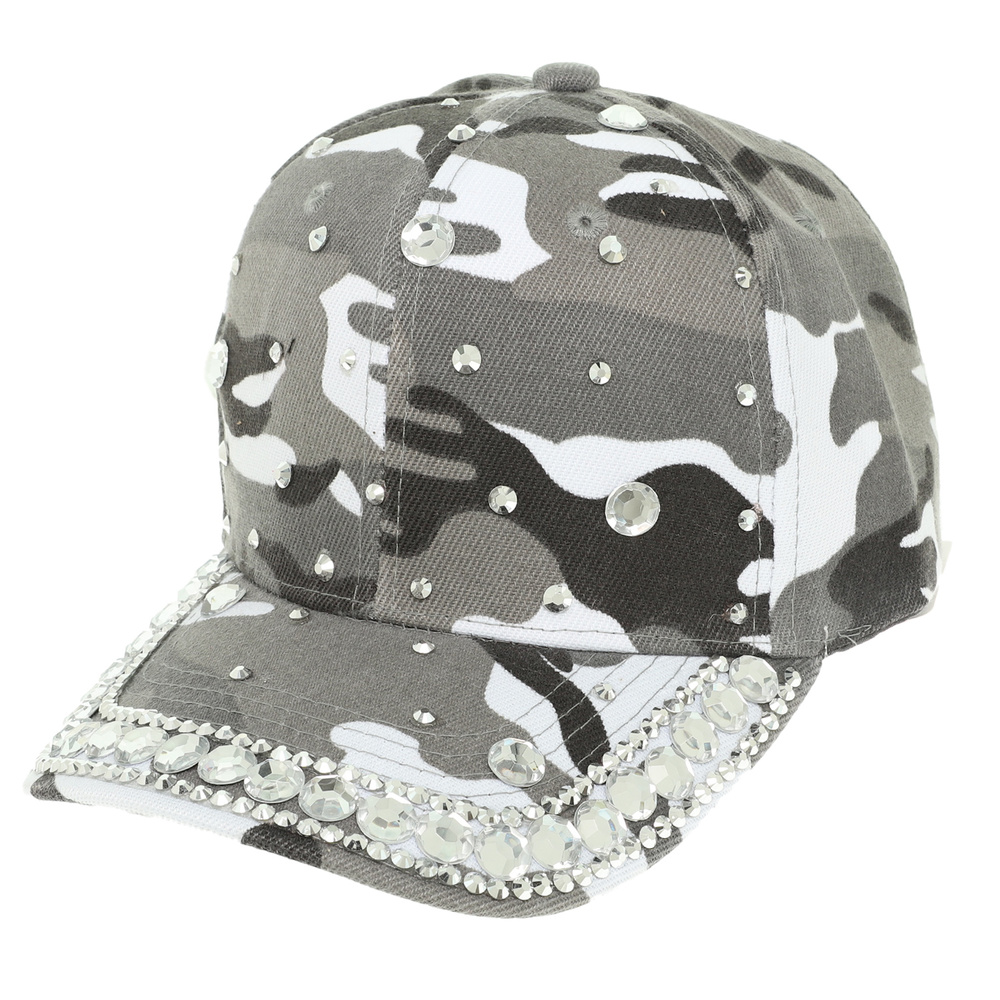CAMO THEME BASEBALL CAP WITH CRYSTAL STUDS IN GREEN CAMO OR WHITE COLOR OPTIONS