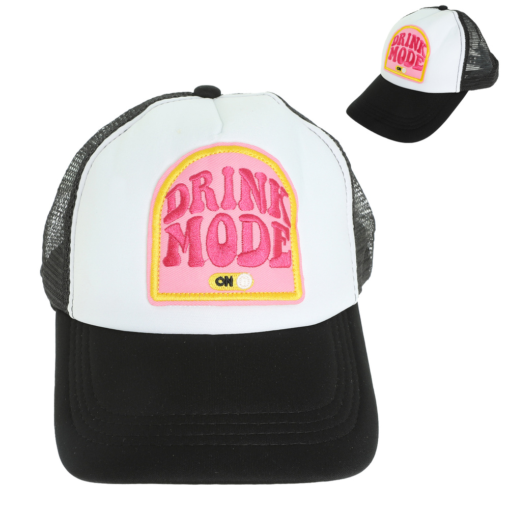 "DRINK MODE ON" TRUCKER HAT WITH ADJUSTABLE SNAPBACK CLOSURE