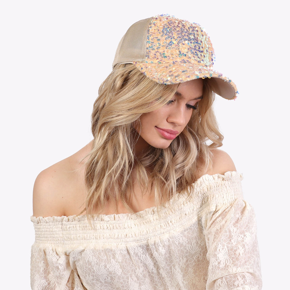 FASHION SPARKLY SEQUIN MESH BACK ADJUSTABLE BASEBALL CAP