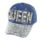 Queen Rhinestone Distressed Denim Fashion Baseball Cap