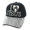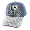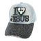 "I LOVE JESUS" CRYSTAL RHINESTONE DISTRESSED DENIM JEWELED BASEBALL CAP