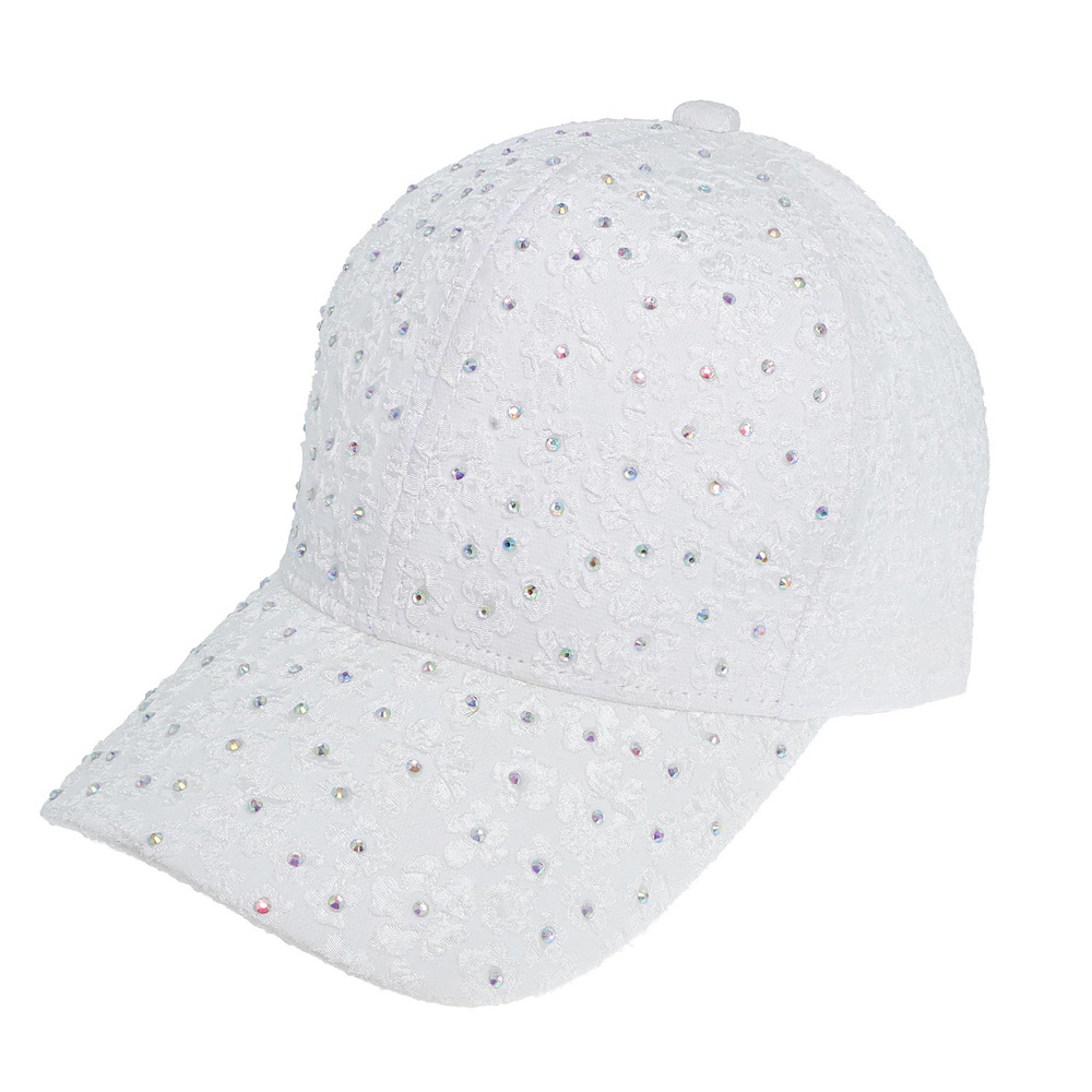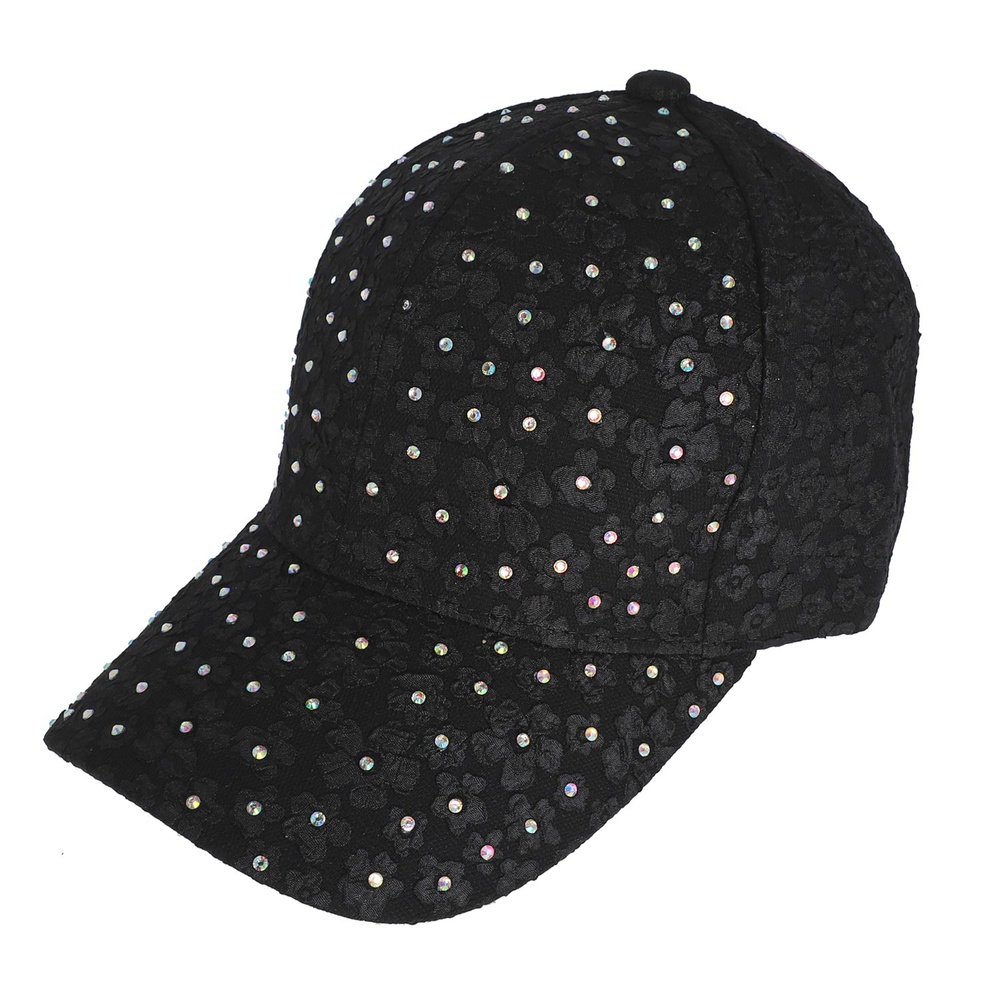 ONE SIZE JEWELED LACE FLORAL PATTERN CRYSTAL RHINESTONE STUDDED BASEBALL CAP
