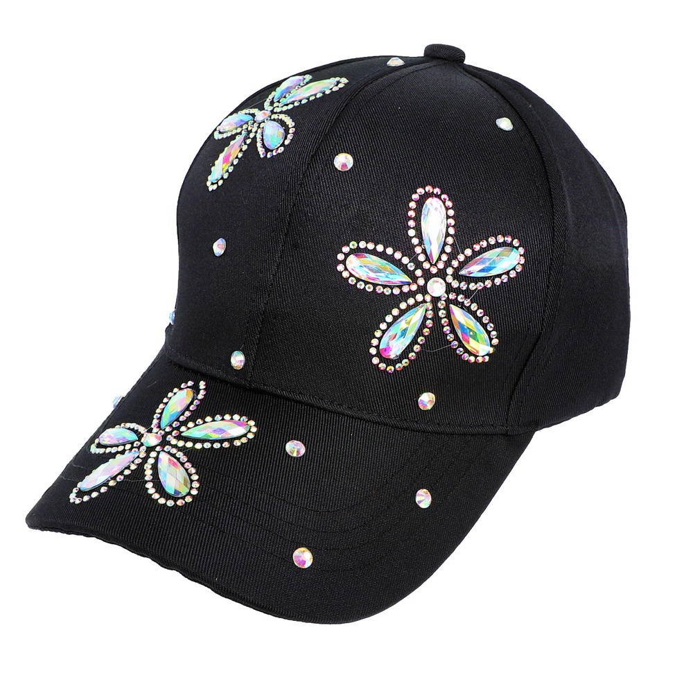 ONE SIZE JEWELED FLORAL PATTERN CRYSTAL RHINESTONE STUDDED BASEBALL CAP