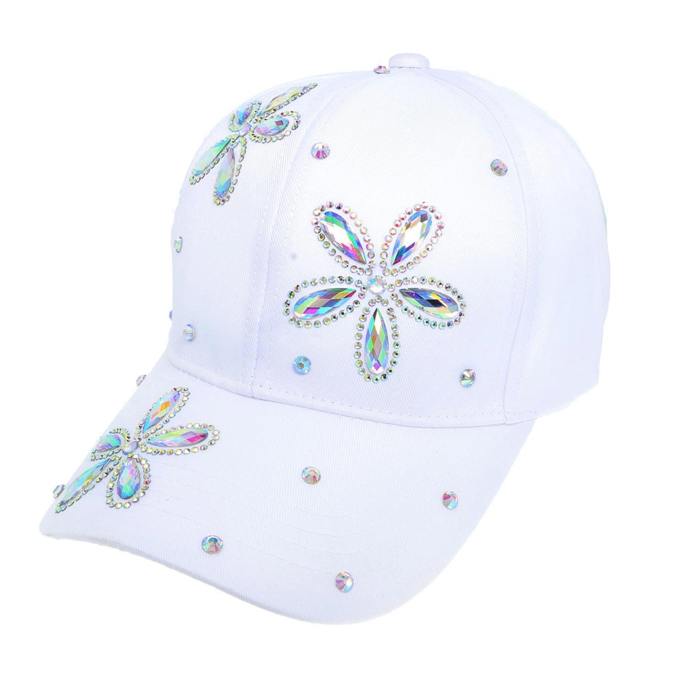 ONE SIZE JEWELED FLORAL PATTERN CRYSTAL RHINESTONE STUDDED BASEBALL CAP