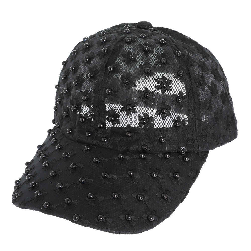 ONE SIZE MESH FLORAL EMBROIDERED PEARL EMBELLISHED BASEBALL CAP