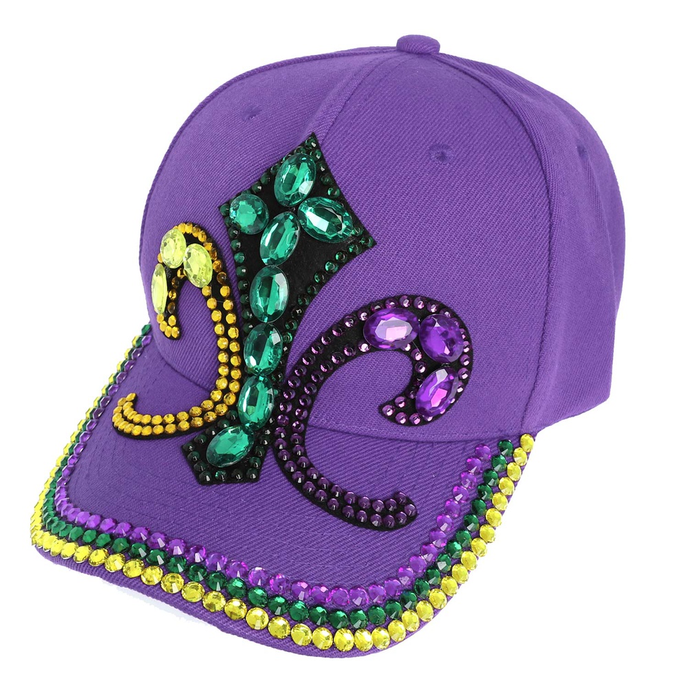 Mardi Gras Fleur De Lis Jeweled Baseball Cap