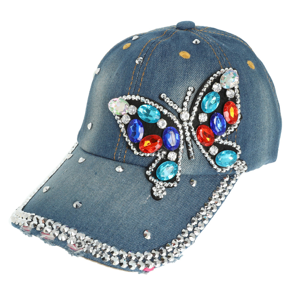 COLORFUL CRYSTAL RHINESTONE EMBELLISHED BUTTERFLY DENIM BASEBALL CAP