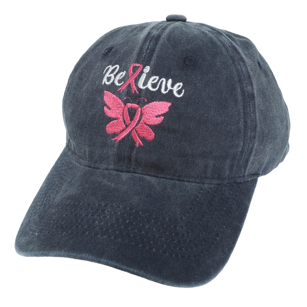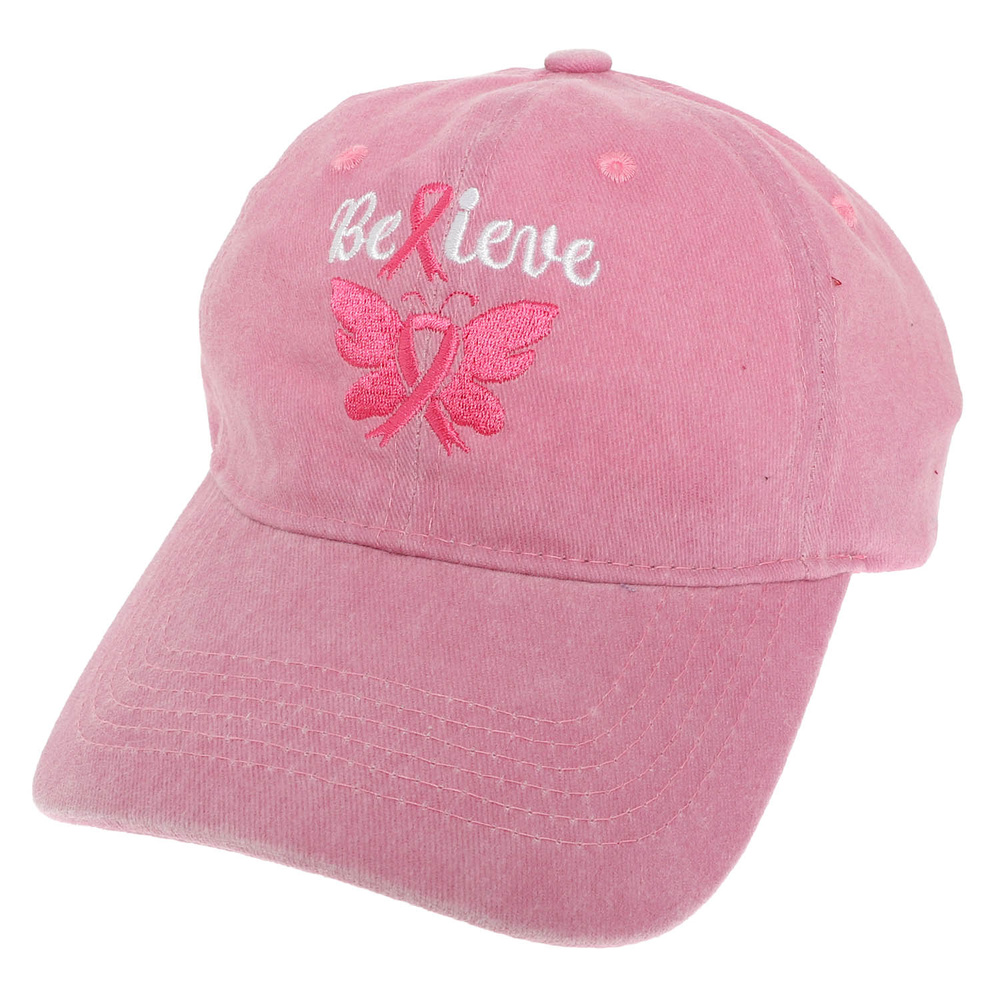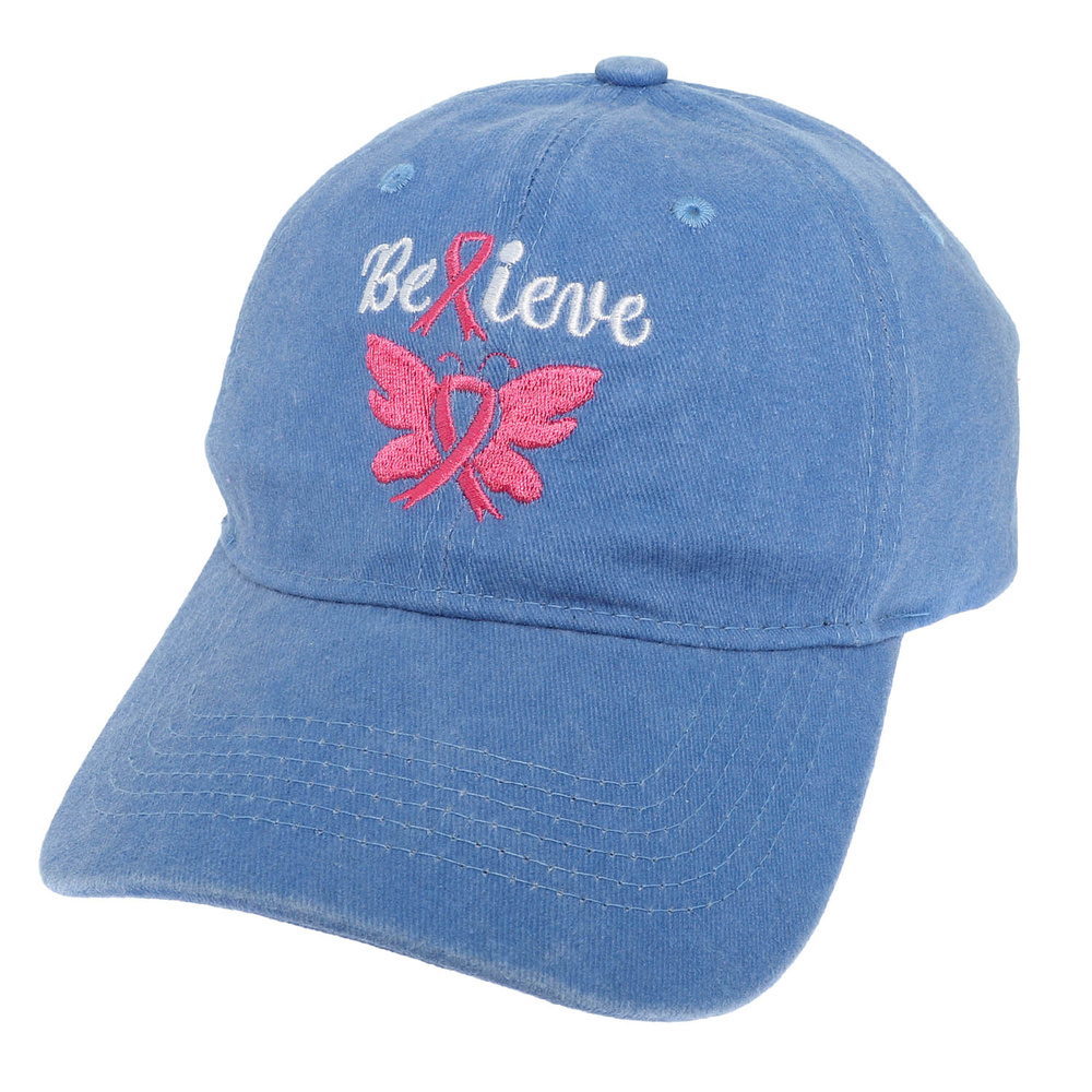 BREAST CANCER AWARENESS RIBBON BUTTERFLY WINGED EMBROIDERED RELAXED DENIM BASEBALL CAP