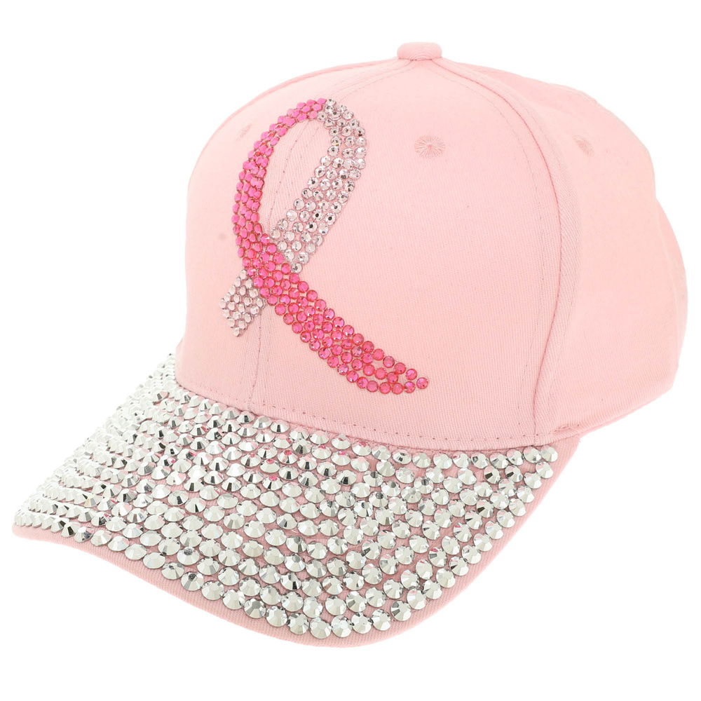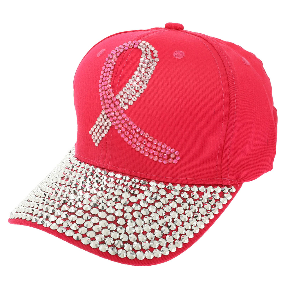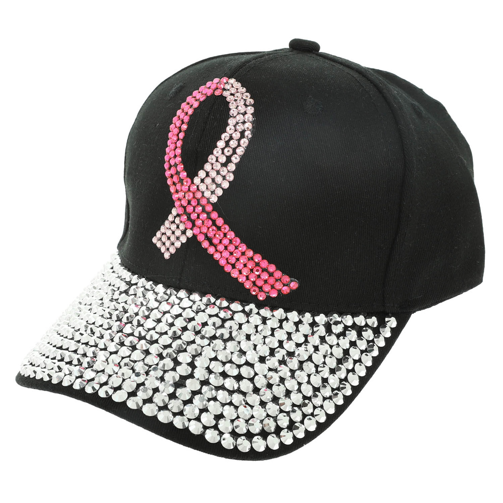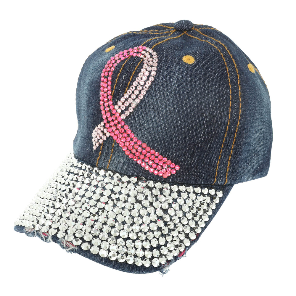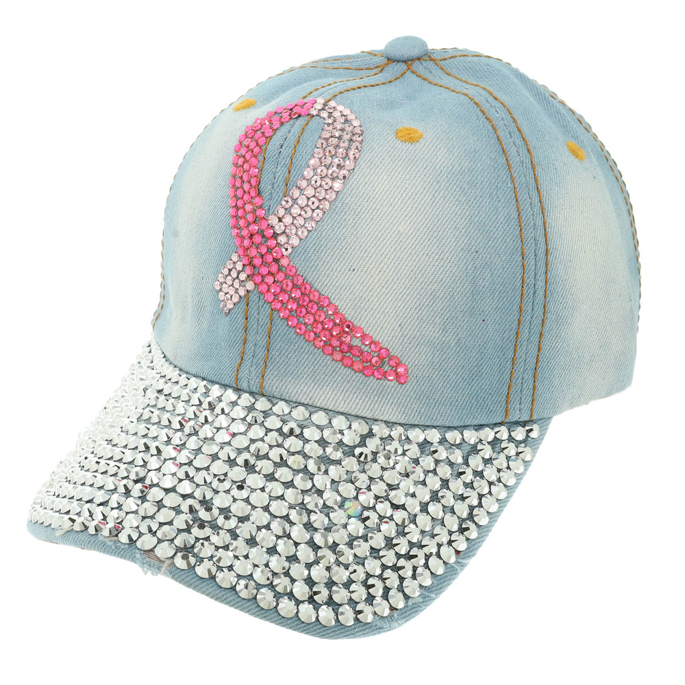 BREAST CANCER AWARENESS RIBBON RHINESTONE BEDAZZLED DENIM BASEBALL CAP