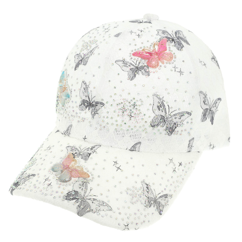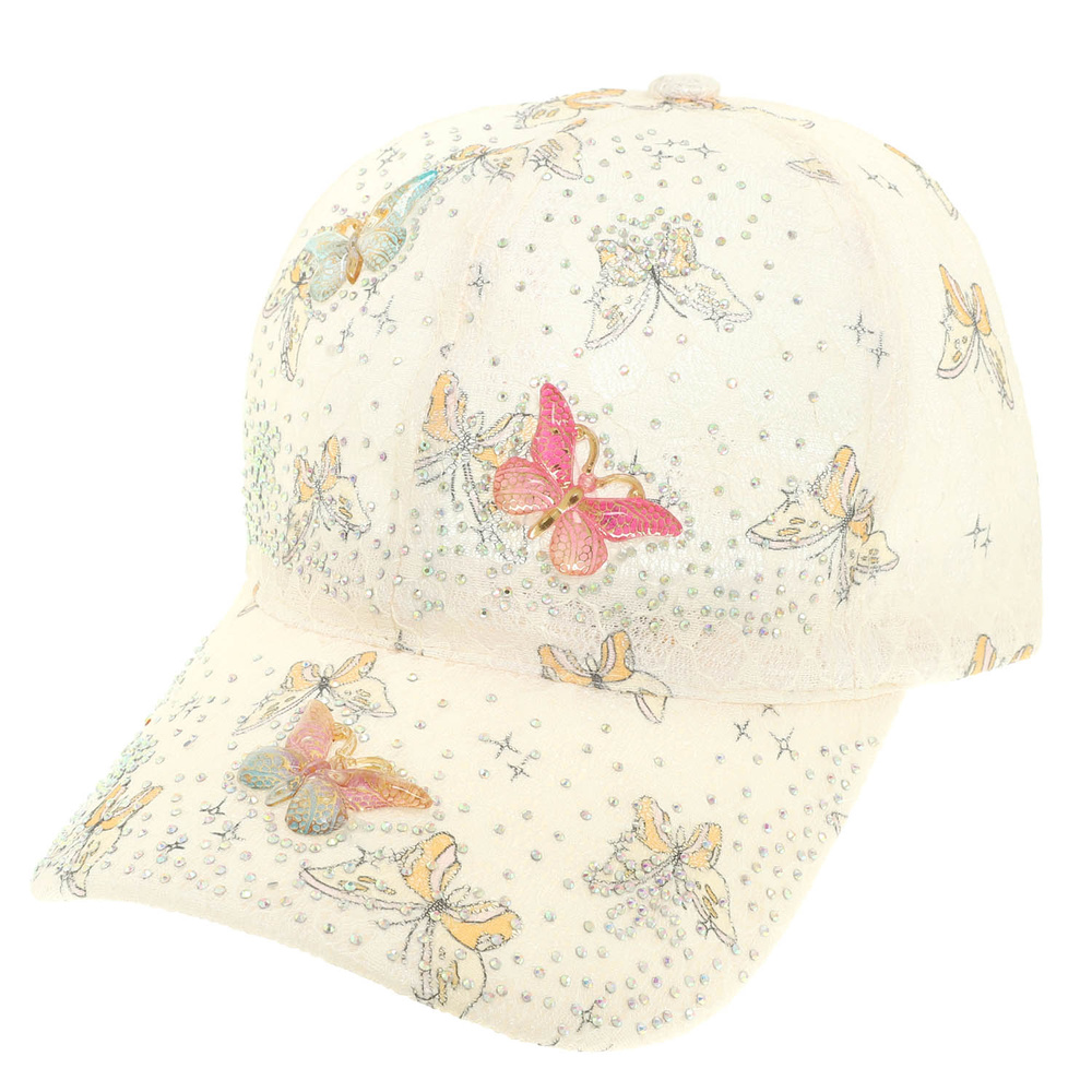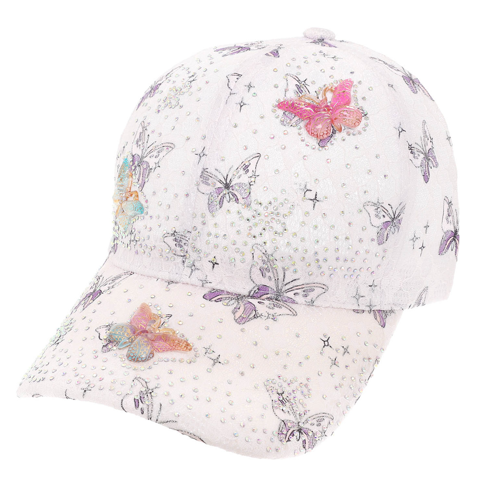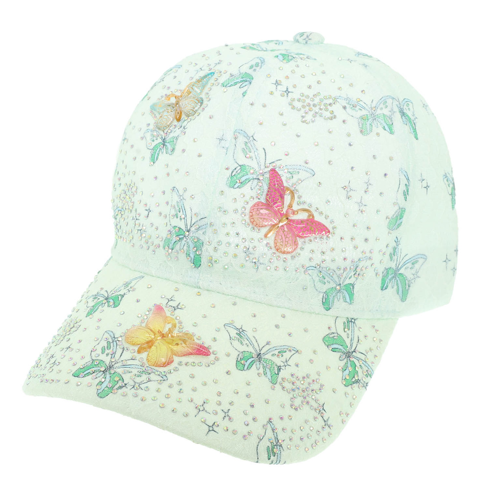 BUTTERFLY THME CAP WITH RHINESTONE, CHARMS AND PRINTED LACE