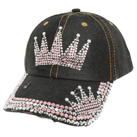 Flag Patch With Full Stoned Bill On Distressed Denim Fashion Baseball Cap