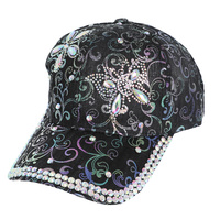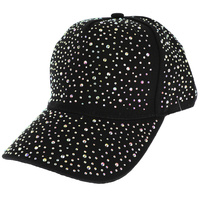 Full Rhinestone Studded Front On Distressed Denim Fashion Baseball Cap