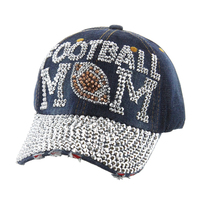 FULL RHINESTONE STUDDED FRONT ON DISTRESSED DENIM FASHION BASEBALL CAP