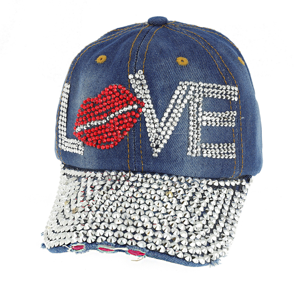 "love" With Lip Stoned On Distressed Denim Fashion Baseball Cap