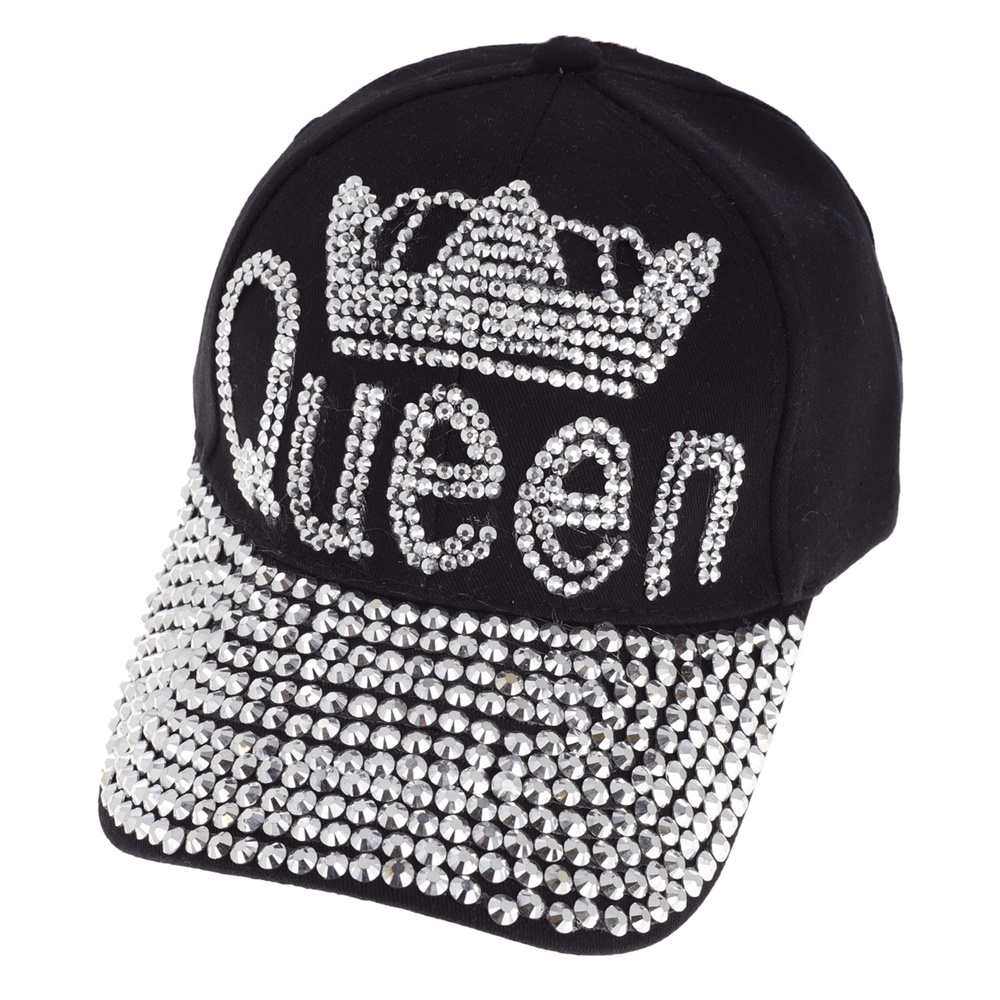 Queen With Crown Rhinestone Distressed Denim Fashion Baseball Cap