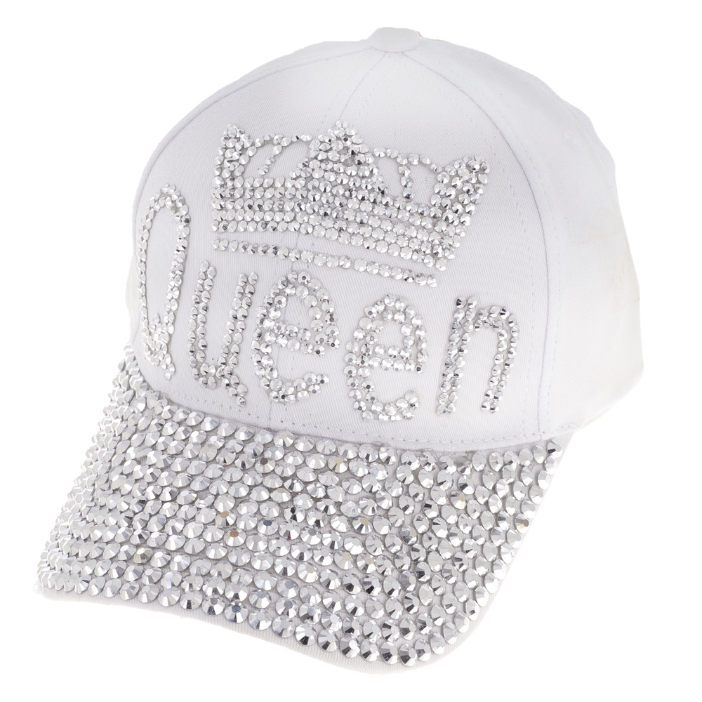 Queen With Crown Rhinestone Distressed Denim Fashion Baseball Cap