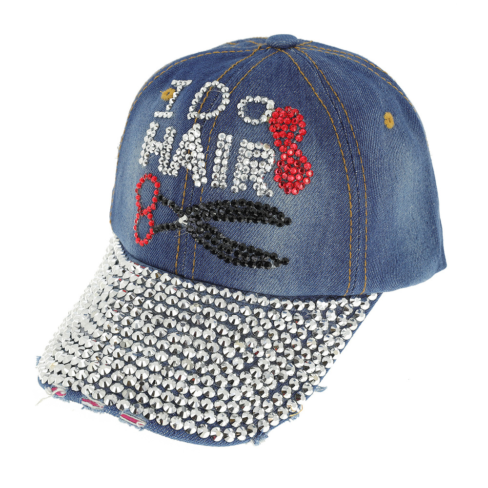 I Do Hair With Scissors Rhinestone Distressed Denim Fashion Baseball Cap