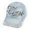 CURSIVE LOVE RHINESTONE DISTRESSED DENIM FASHION BASEBALL CAP