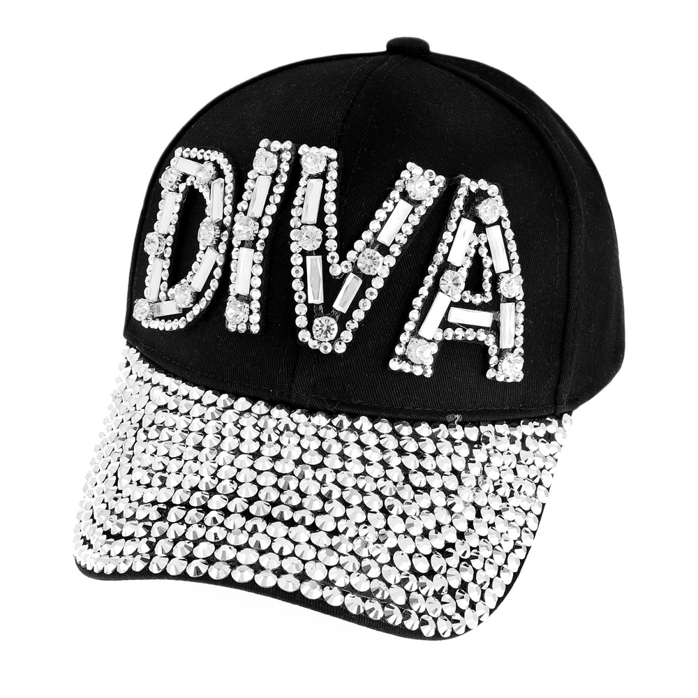 Diva With Gems And Full Stone Bill On Distressed Denim Fashion Baseball Cap Htc652bk