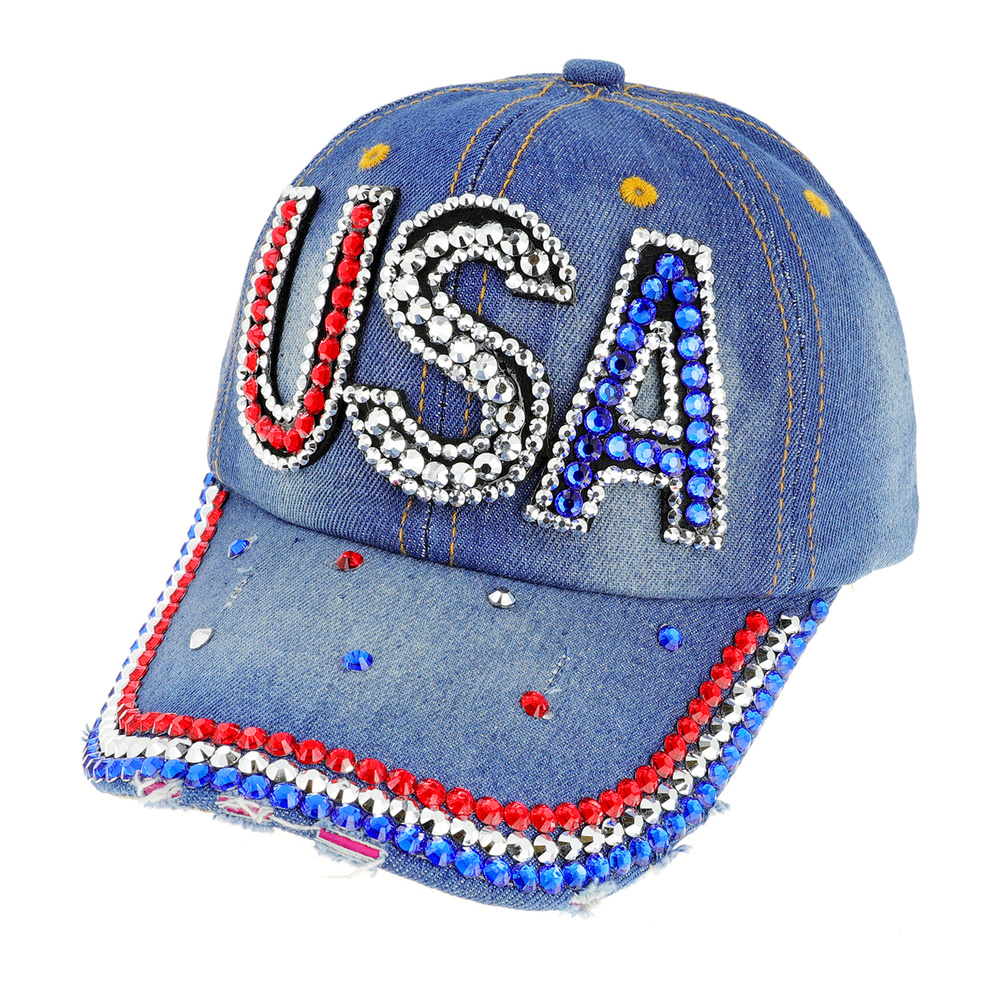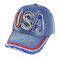 Patriotic USA American Flag on Distress Denim Fashion Baseball Cap
