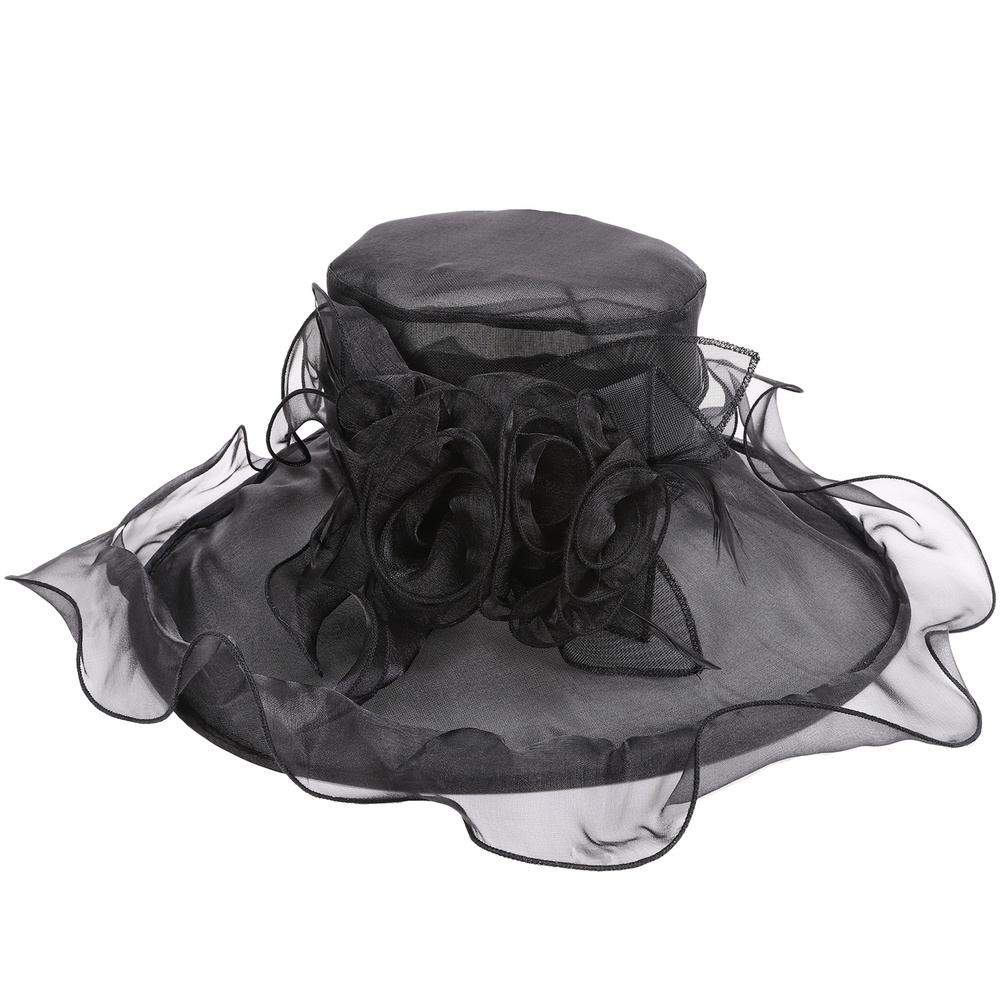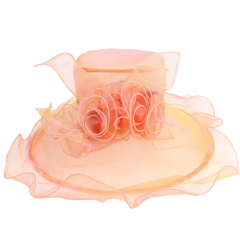 KENTUCKY DERBY SOUTHERN STYLE FLORAL ORGANZA SATIN TRIM FLAT TOP HAT
