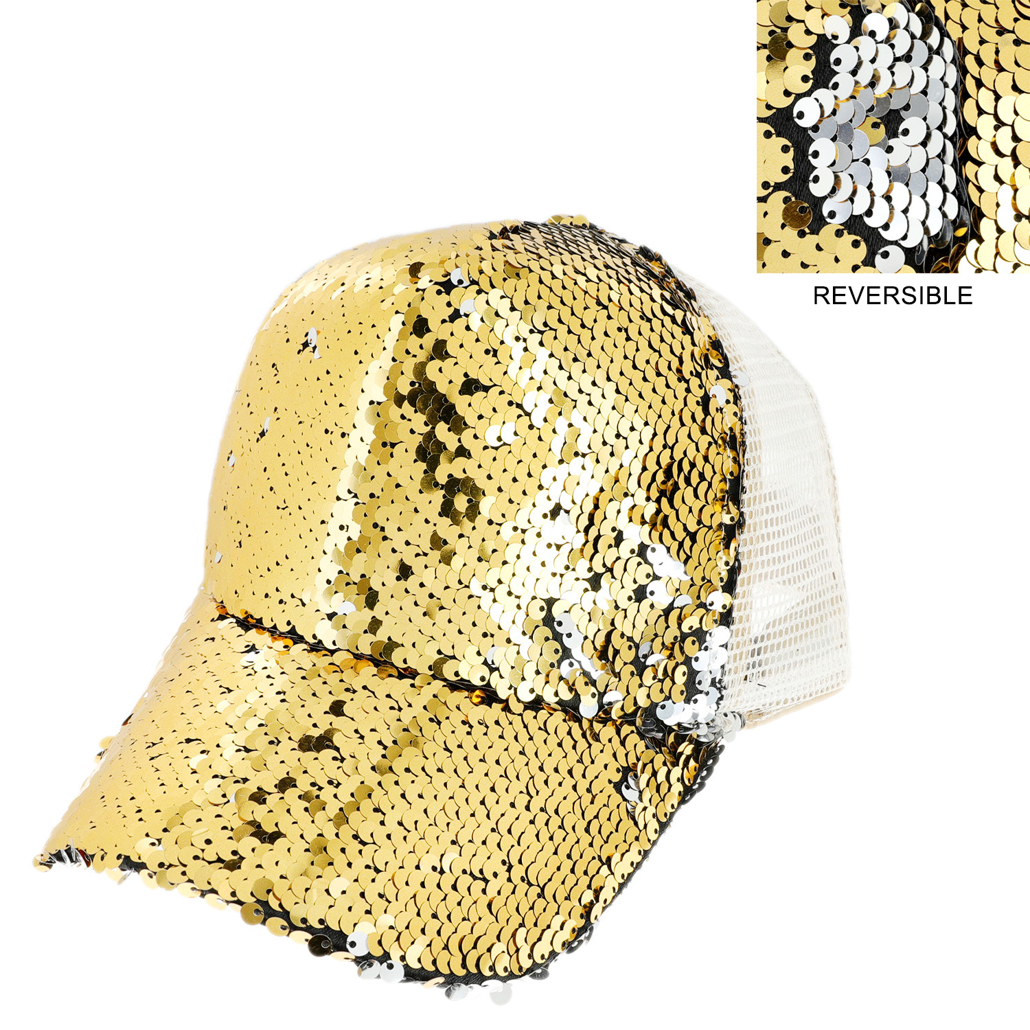 TWO SIDED RESERSIBLE SEQUIN MESH BACK ADJUSTABLE BASEBALL CAP