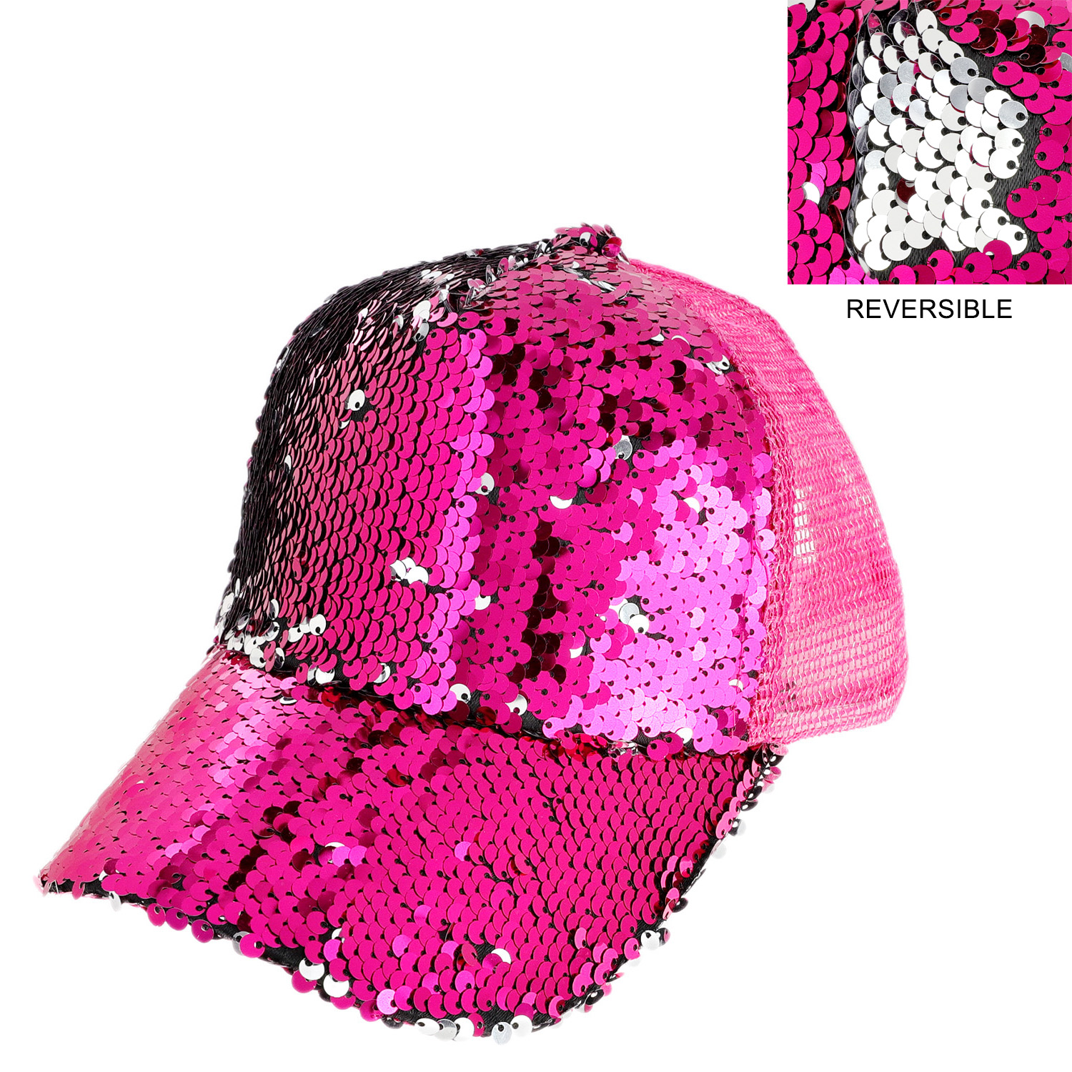 TWO SIDED RESERSIBLE SEQUIN MESH BACK ADJUSTABLE BASEBALL CAP