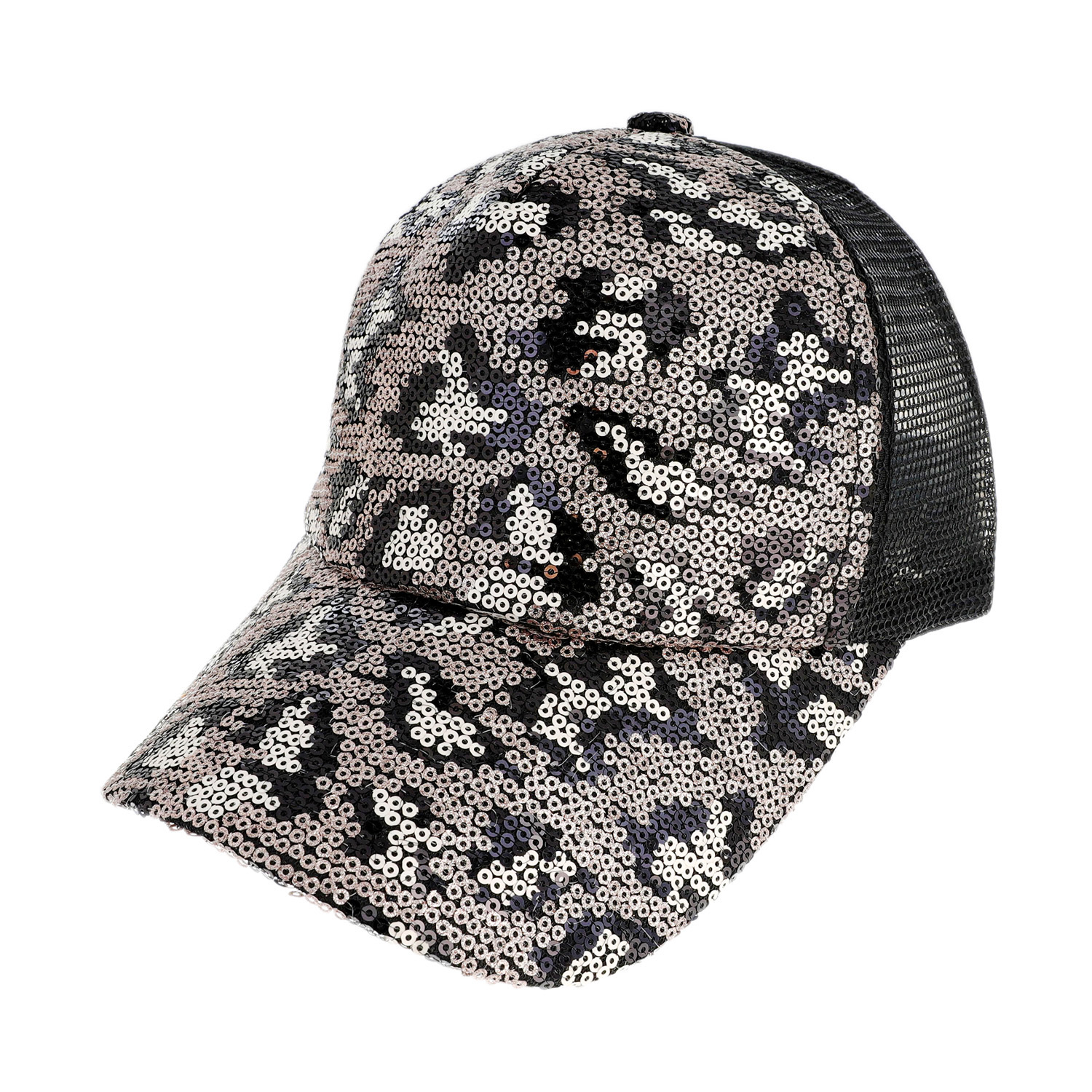 FASHION LEOPARD CHEETAH PRINT SEQUIN MESH BACK ADJUSTABLE BASEBALL CAP