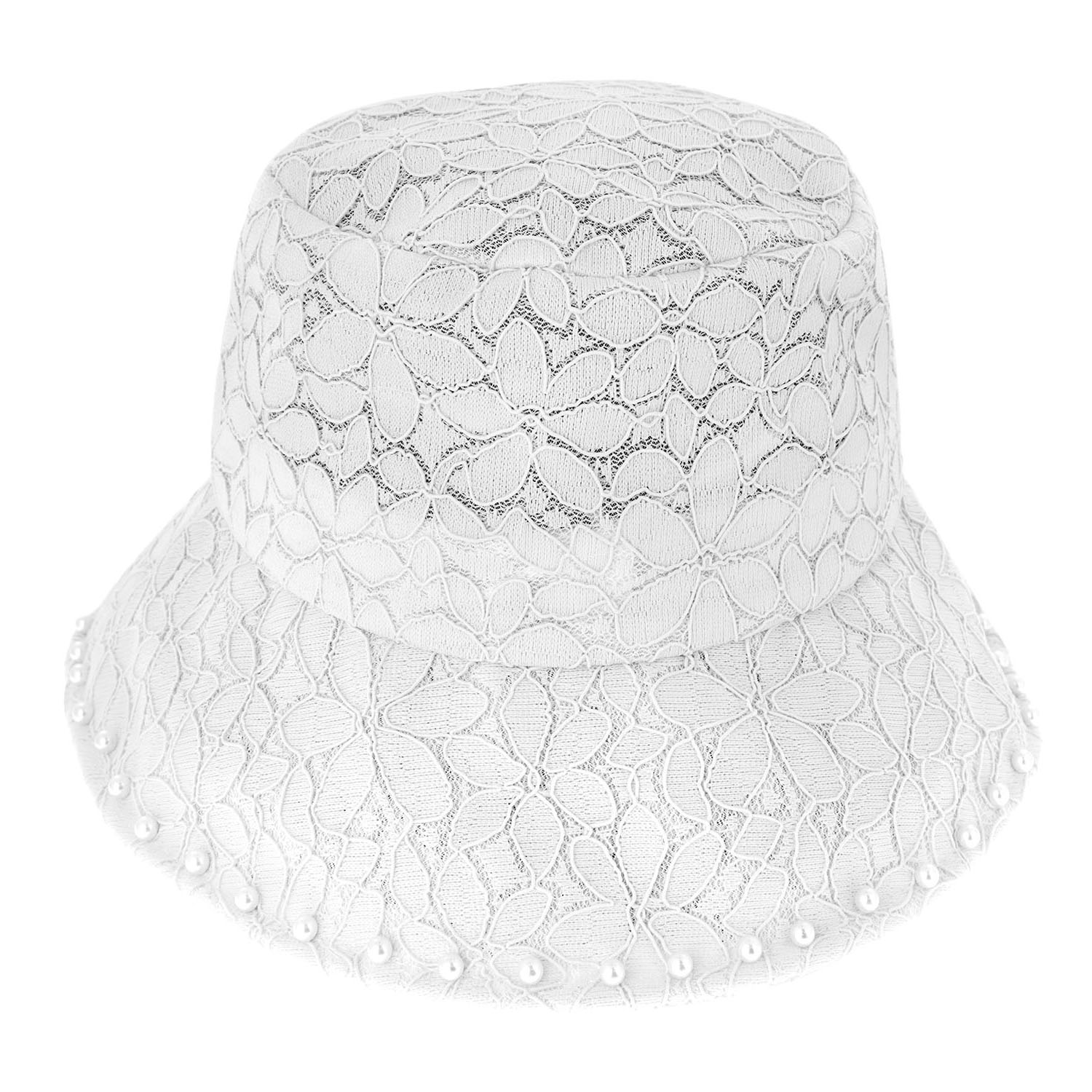 FASHION FLORAL LACE BUCKET HAT WITH PEARL