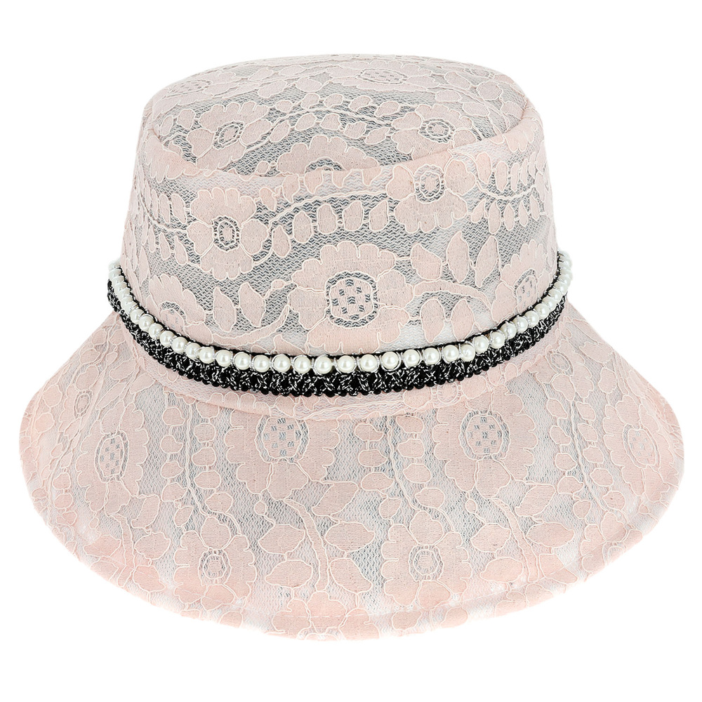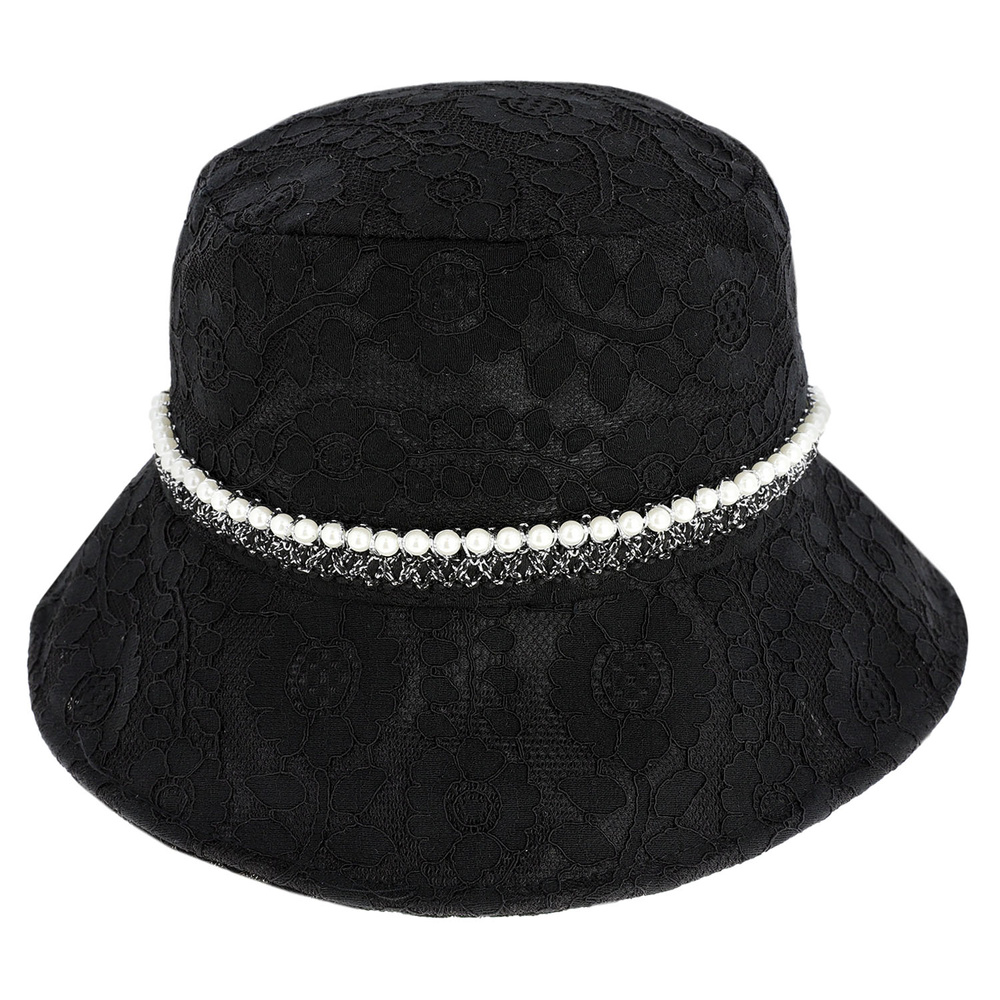 FASHION LACE BUCKET HAT WITH PEARL STRIP