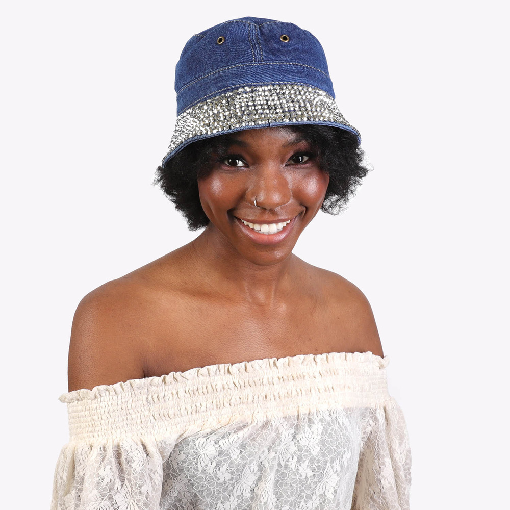 FASHION BLING RHINESTONE DENIM BUCKET HAT