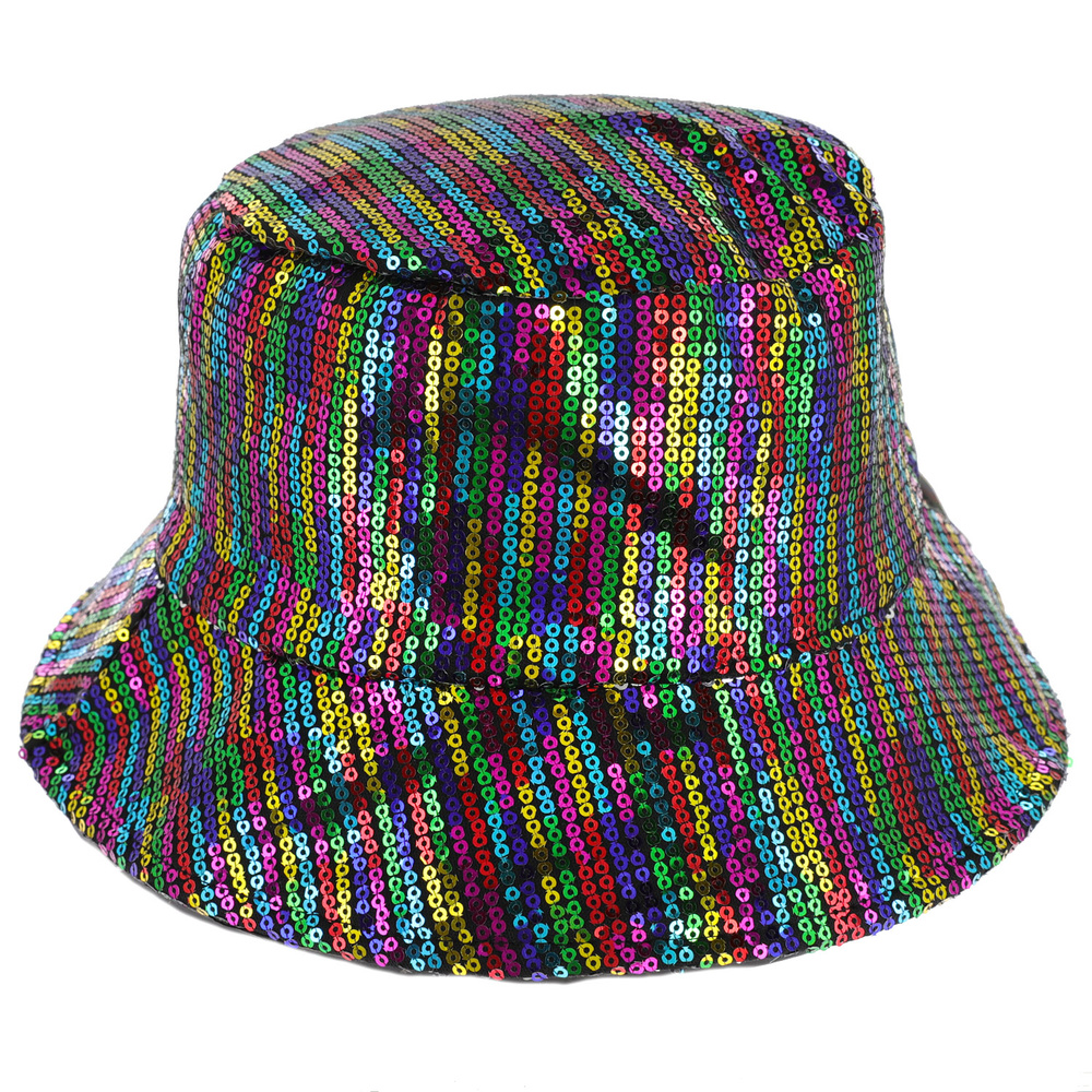 90S STYLE HIP HOP TRENDY METALLIC SEQUIN BUCKET FISHERMAN HAT