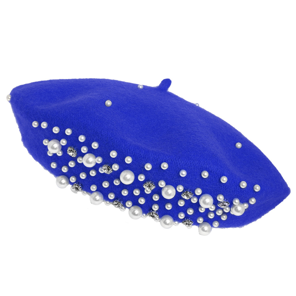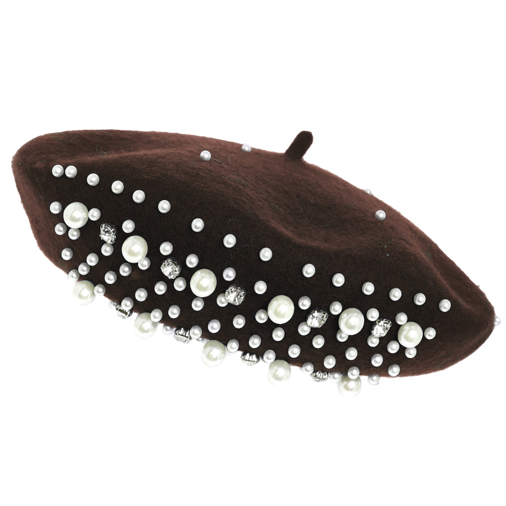 PEARL RHINESTONE EMBELLISHED WOOL BLEND FRENCH BERET