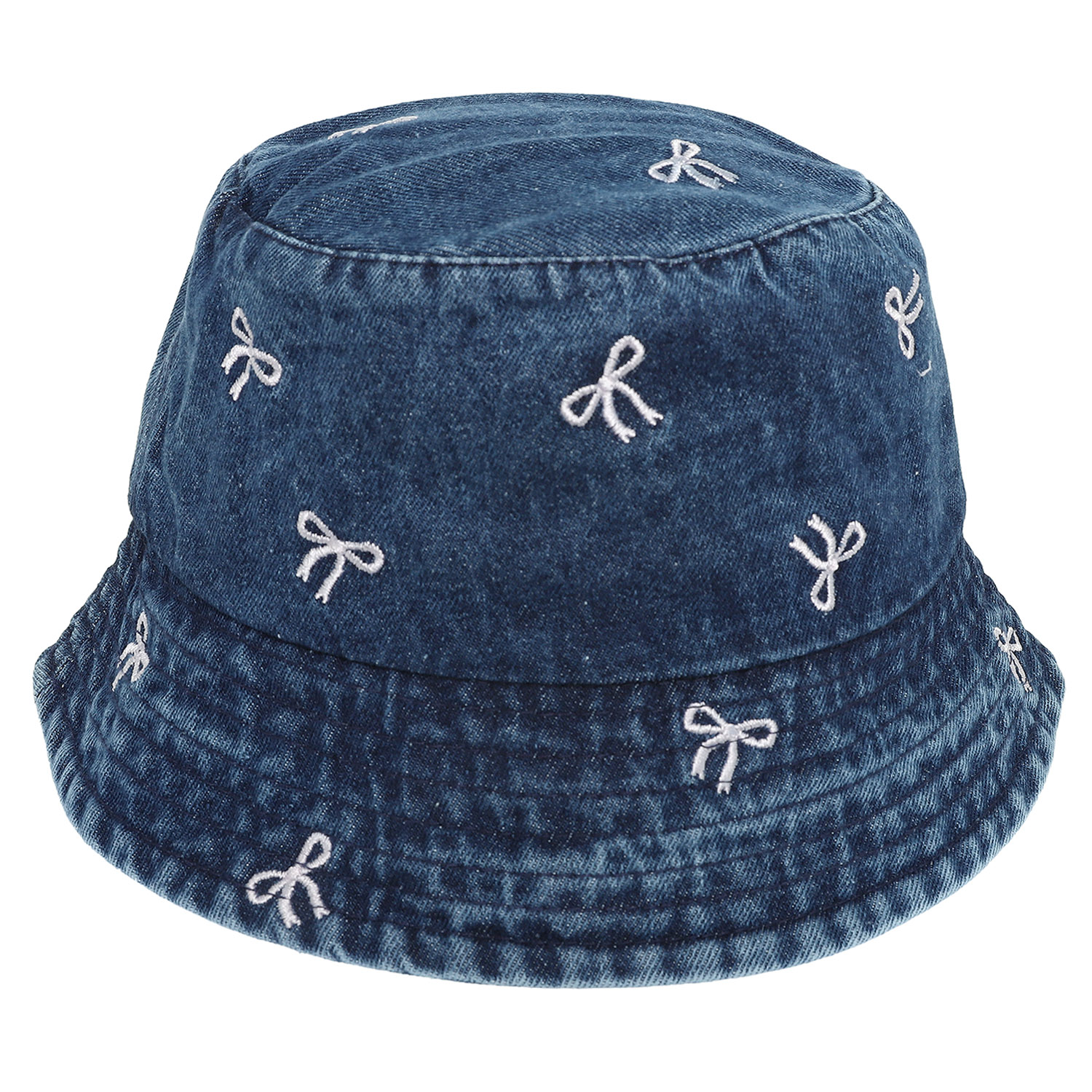 RELAXED DENIM BUCKET HAT WITH EMBROIDERED BOW ACCENTS
