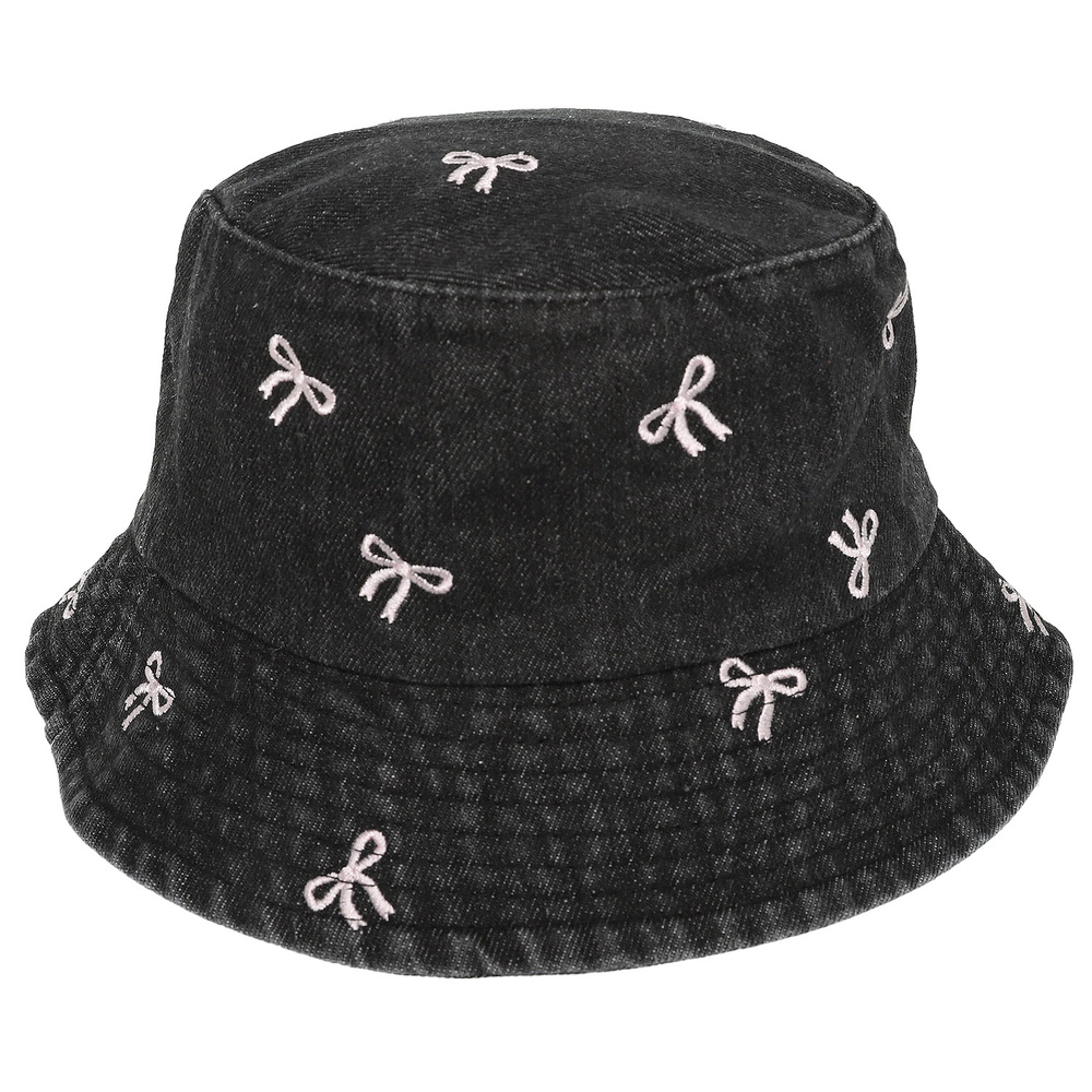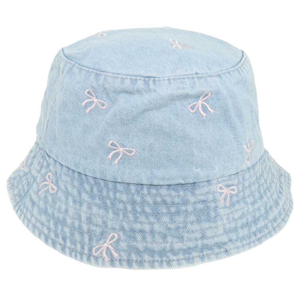 RELAXED DENIM BUCKET HAT WITH EMBROIDERED BOW ACCENTS