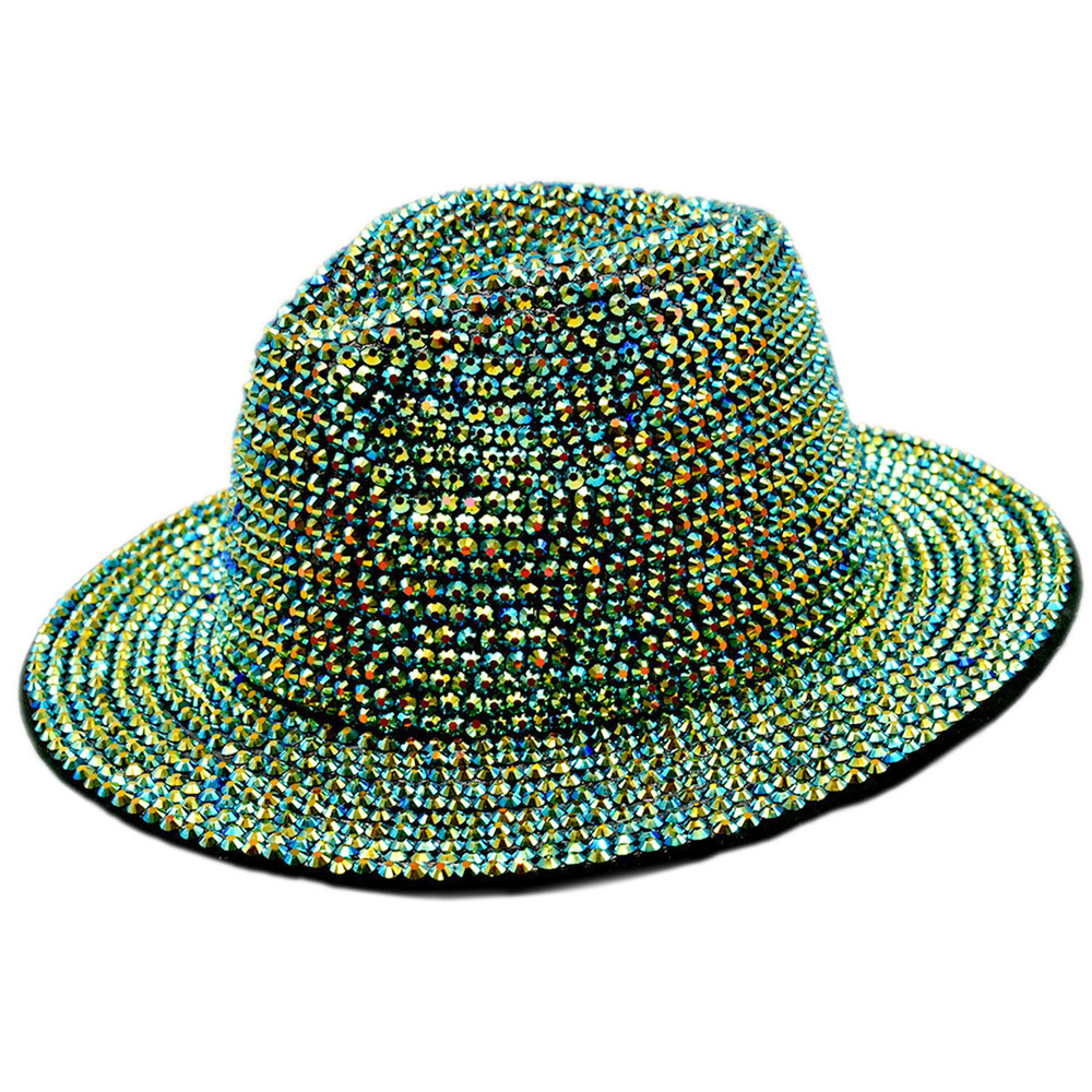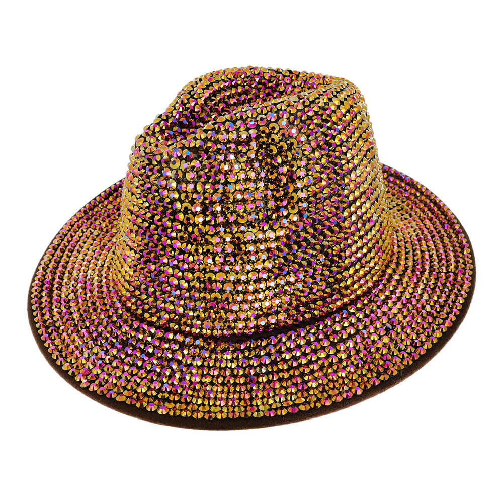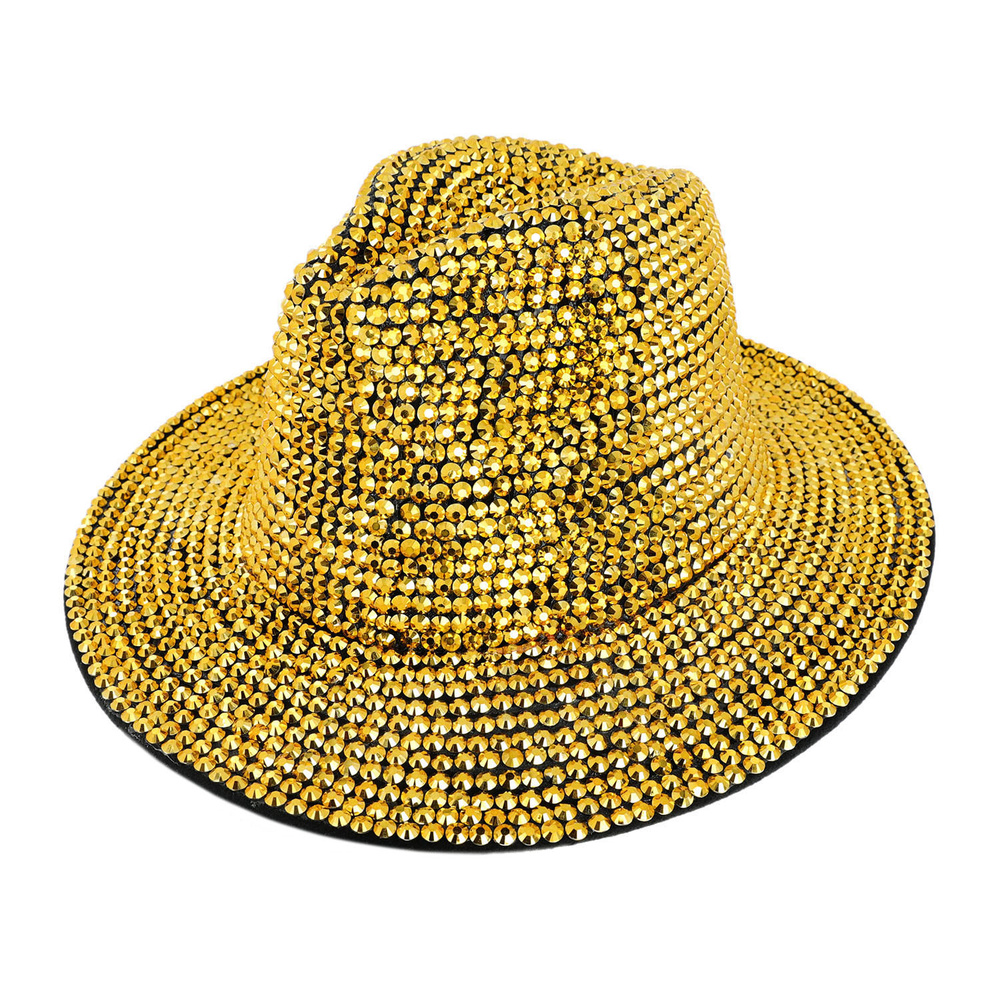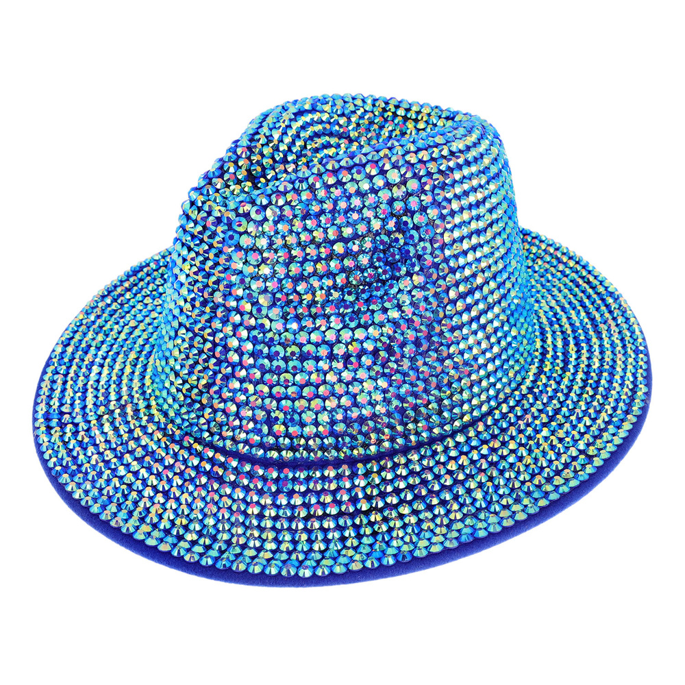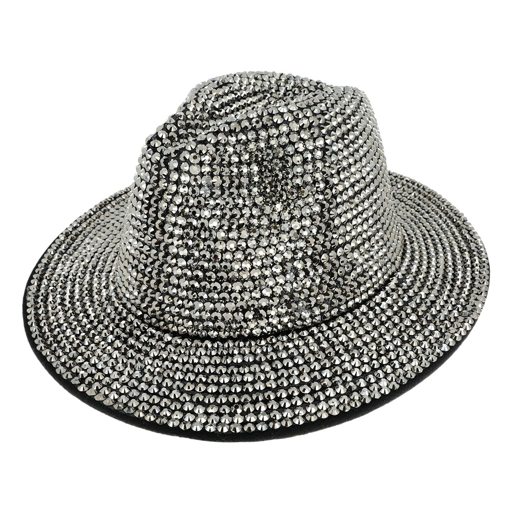 Fashion Bling Rhinestone Studded Wide Brim Felt Fedora Hat